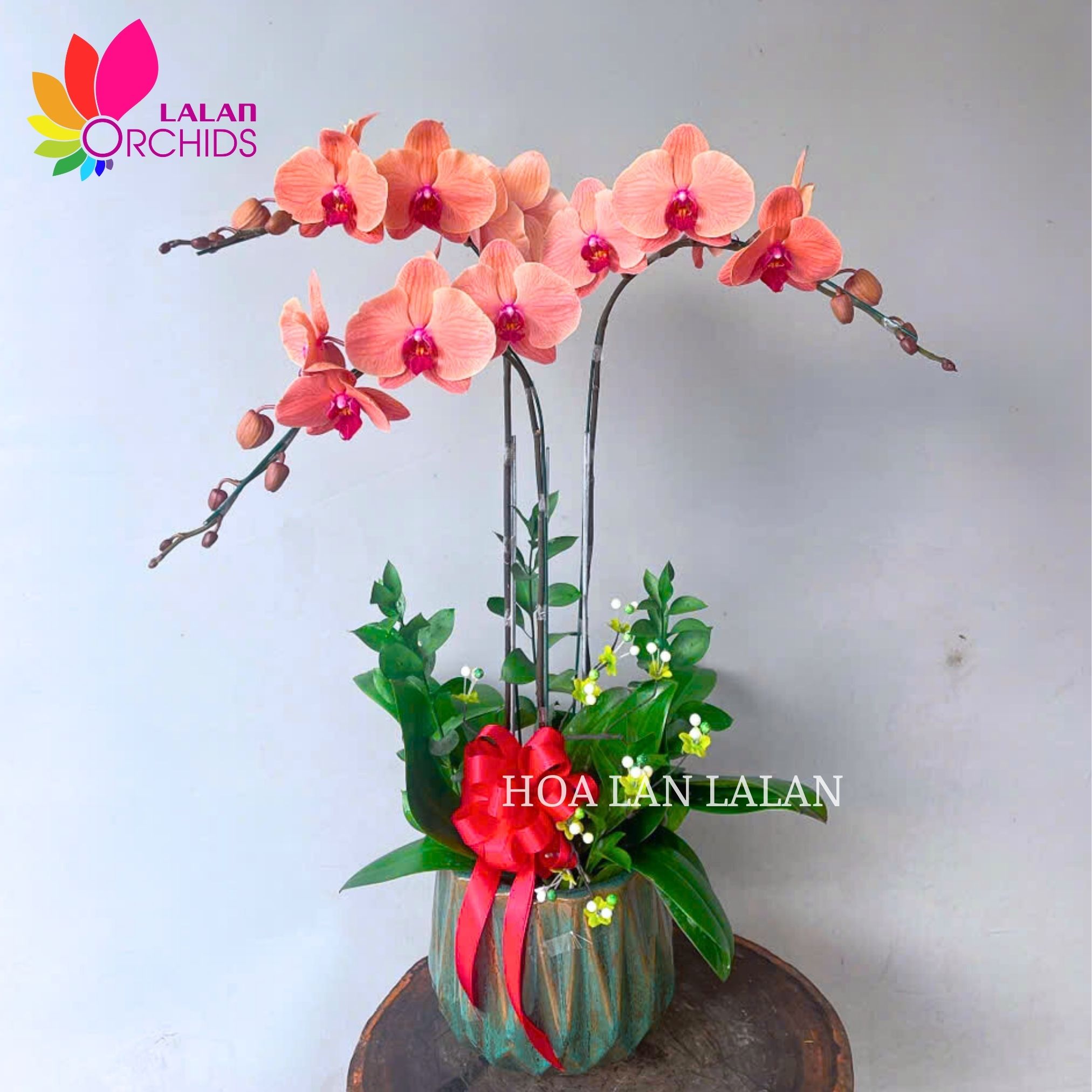 Màu cam của chậu hoa lan hồ điệp không rực rỡ quá mức đủ để tạo ấn tượng mạnh mẽ thu hút mọi ánh nhìn. Khi được trang trí trong không gian sống, chậu hoa lan hồ điệp cam 3 cành mang lại cảm giác hài hòa, tươi mới tràn đầy sức sống.