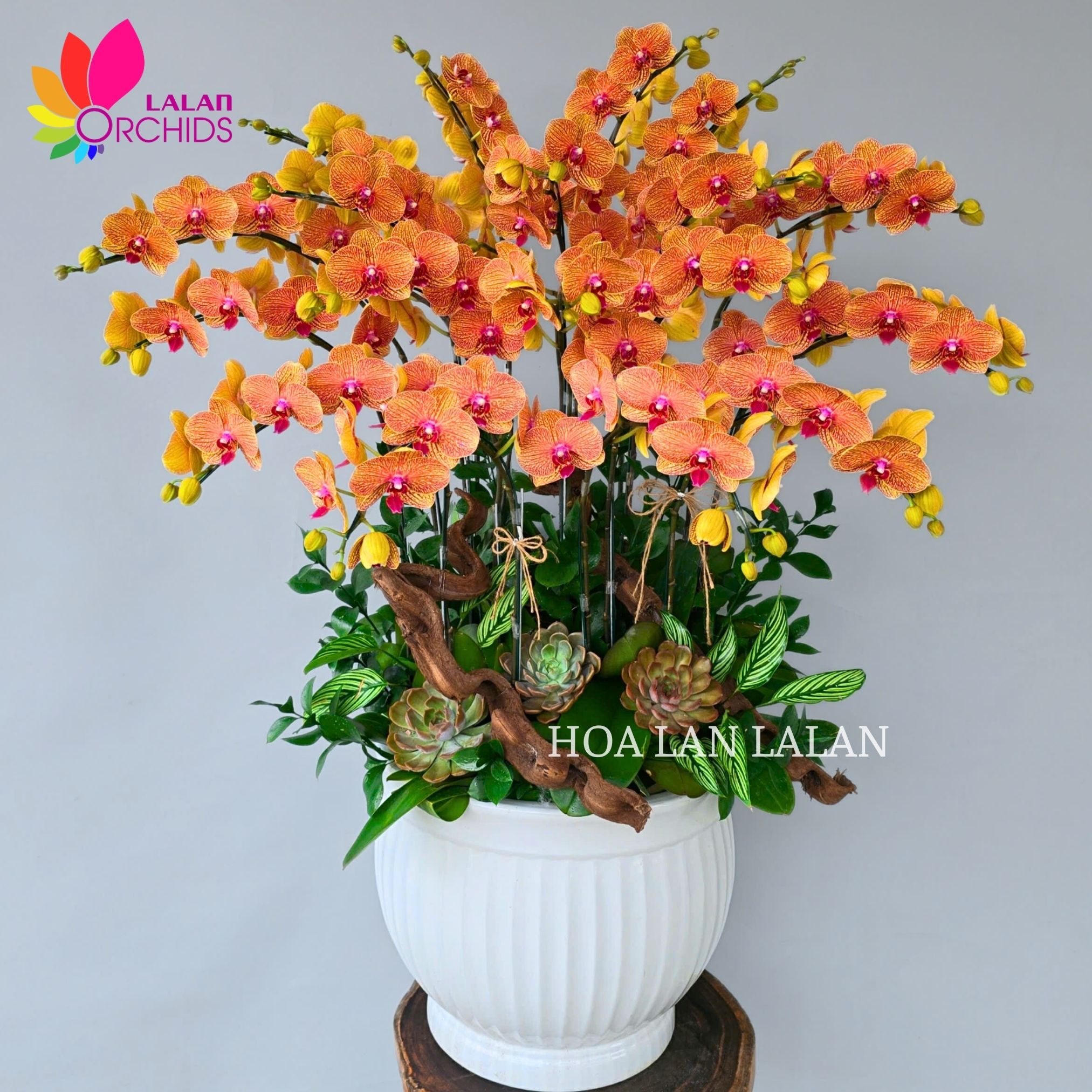 Vẻ đẹp độc đáo của những cánh hoa lan hồ điệp cam sọc kết hợp với sự thanh lịch và kiêu sa của thiết kế chậu sẽ làm bừng sáng không gian trưng bày, mang đến nguồn năng lượng tích cực và may mắn cho gia chủ. Chậu hoa lan hồ điệp cam sọc là món quà tuyệt vời trong nhiều dịp đặc biệt. Số 18 trong phong thủy còn tượng trưng cho sự may mắn và an khang, chậu hoa lan hồ điệp cam sọc rất phù hợp để trưng trong các dịp lễ Tết, khai trương, tân gia hay thăng chức.