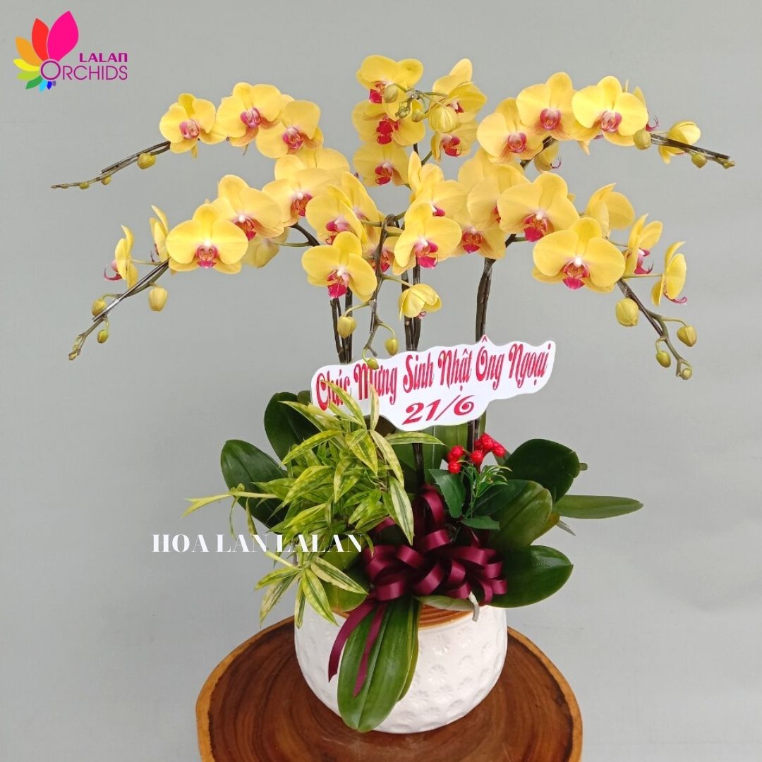 Chậu hoa lan hồ điệp màu vàng mừng sinh nhật