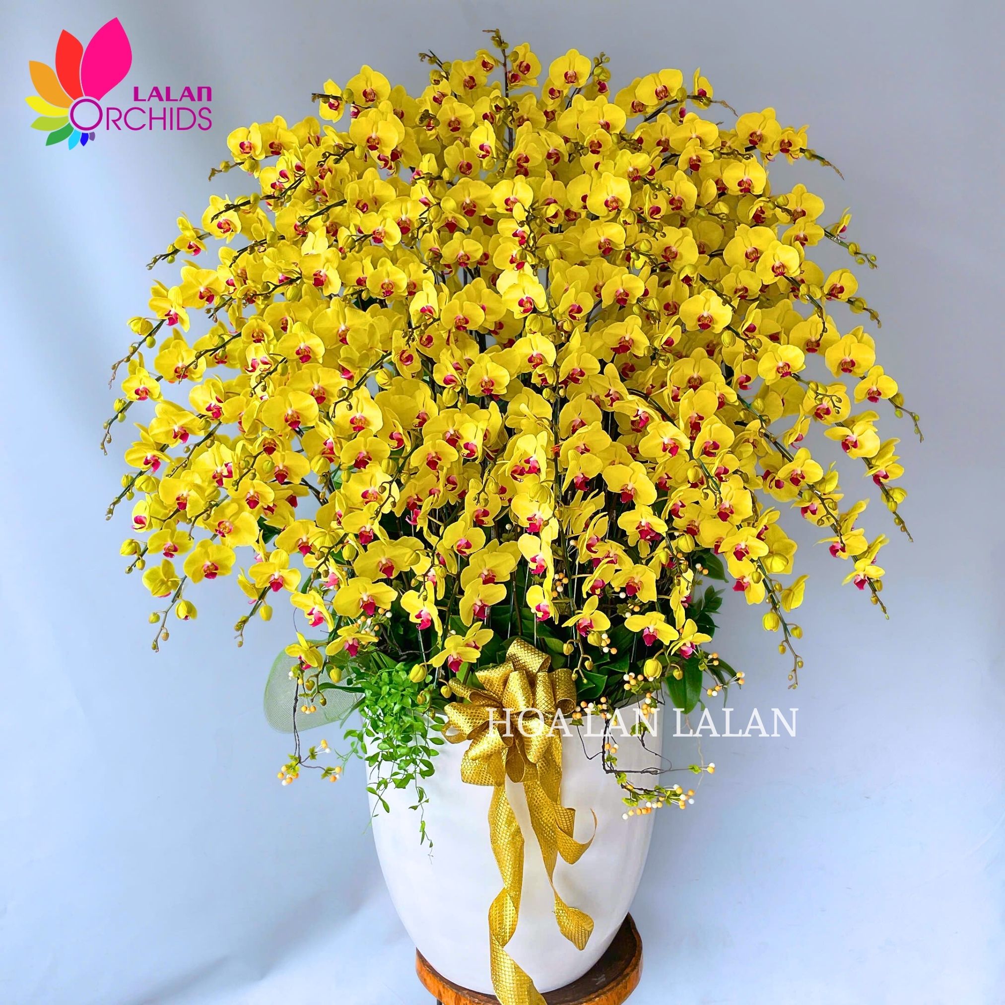 Chậu hoa lan hồ điệp vàng được yêu thích bởi sắc vàng tươi sáng, rực rỡ như ánh mặt trời, tượng trưng cho sự giàu sang, thành công và thịnh vượng. Chậu hoa lan hồ điệp màu vàng sang trọng với kích thước lớn, nhiều cành lan vàng vươn lên kiêu hãnh, tỏa ra vẻ đẹp lộng lẫy, khiến bất kỳ ai cũng phải trầm trồ khen ngợi. Khi trưng bày chậu hoa lan hồ điệp vàng ngay lập tức tạo sự thú hút, là điểm nhấn đẳng cấp, thể hiện sự tinh tế và gu thẩm mỹ cao của gia chủ.