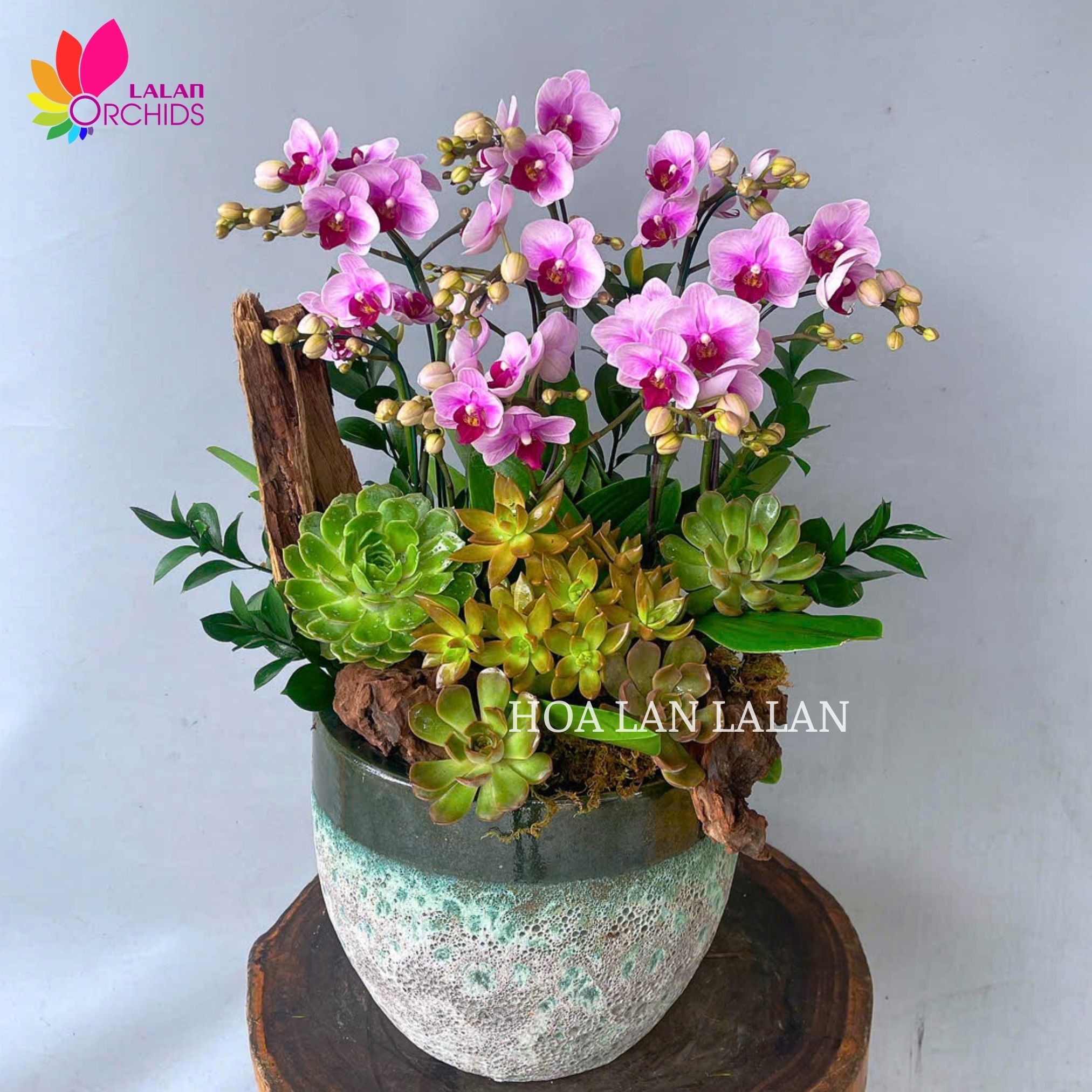 Nếu bạn đang tìm kiếm một món quà vừa thẩm mỹ vừa mang ý nghĩa phong thủy tốt lành thì chậu hoa lan hồ điệp mini hồng sen đá để bàn kết hợp với gỗ lũa là sự lựa chọn hoàn hảo. Chậu hoa lan hồ điệp không chỉ là món quà mang lại sự nhẹ nhàng, tinh tế mà còn tạo không gian xanh tươi, góp phần đem lại sự thư thái, an yên và năng lượng tích cực cho ngôi nhà hay văn phòng làm việc.