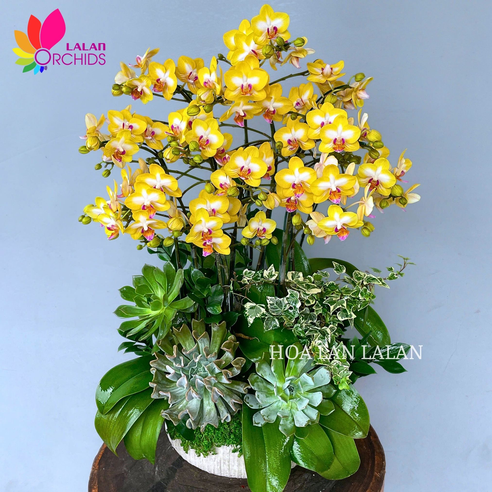 Với sắc vàng rực rỡ lan hồ điệp luôn được biết đến là loài hoa tượng trưng cho sự tinh tế và thanh lịch, ở phiên bản mini với sắc vàng rực rỡ chậu hoa lan hồ điệp trở nên cực kỳ duyên dáng, và dễ thương nhưng không kém phần sang trọng. Kích thước nhỏ gọn nhưng tinh tế, chậu hoa lan hồ điệp mini vàng để bàn thích hợp tặng vào các dịp đặc biệt như sinh nhật, khai trương, hoặc những dịp kỷ niệm, lễ tết. Lan hồ điệp vàng đại diện cho sự bền vững và phát triển, chậu hoa lan hồ điệp khi được tặng sẽ thể hiện lời chúc về thành công và tài lộc.
