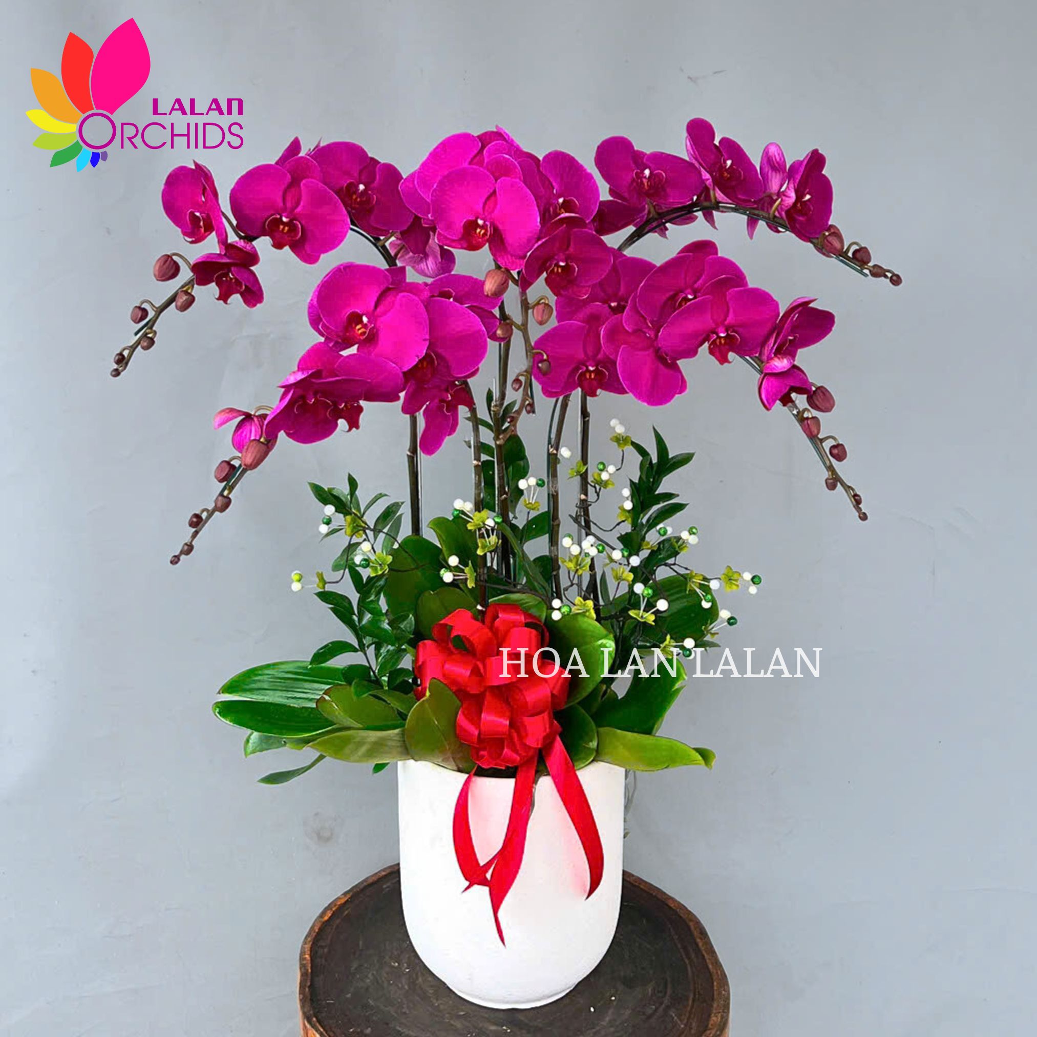 Với cấu trúc 5 cành, chậu hoa lan hồ điệp tím đại diện cho ngũ hành – Kim, Mộc, Thủy, Hỏa, Thổ – mang đến sự cân bằng, hài hòa và ổn định cho gia chủ. là món quà hoàn hảo tặng ngươi thân, bạn bè hay đối tác đồng nghiệp vào những dịp quan trọng. Đặt chậu hoa lan hồ điệp tím trong phòng khách, văn phòng hay phòng làm việc đều hợp và sang trọng. Chậu hoa lan hồ điệp tím còn giúp kích hoạt tài vận, thu hút những cơ hội mới và sự thăng tiến trong công việc.