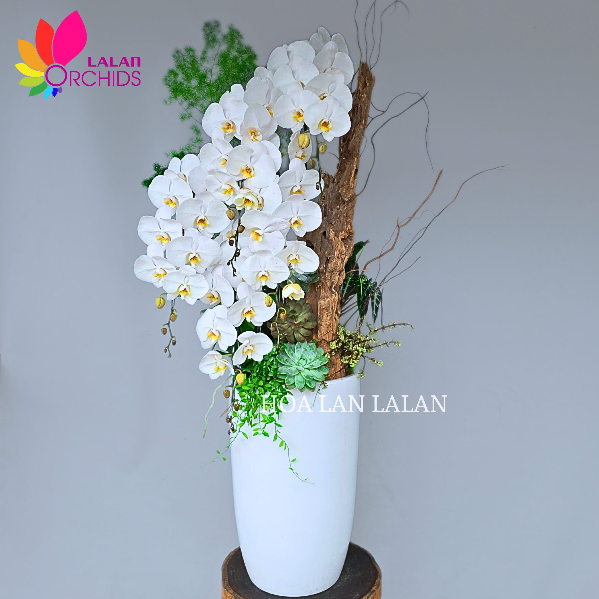 Gỗ lũa đóng vai trò là điểm tựa vững trãi cho lan hồ điệp phát triển. Chậu hoa lan hồ điệp trắng 5 cành cắm nghệ thuật trong phong thủy được cho là có khả năng cân bằng năng lượng, thu hút vận khí tốt và mang lại may mắn, bình an cho gia chủ. Chậu hoa lan hồ điệp sẽ là sự lựa chọn quà tặng hoàn hảo cho mọi dịp từ sinh nhật, tặng khai trương, tân gia hay những dịp lễ, tết.