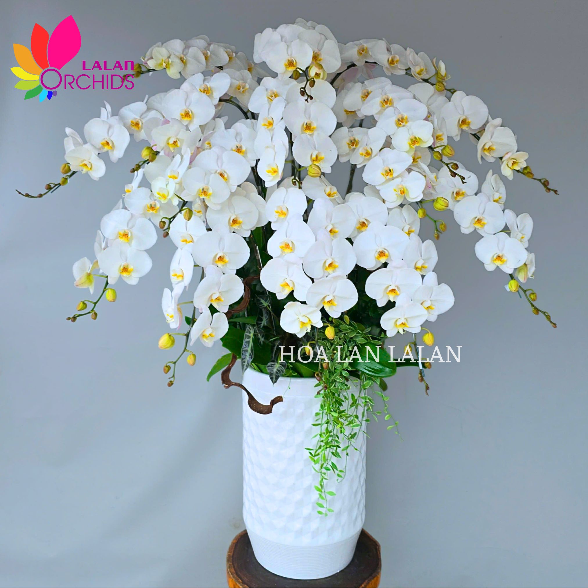 Một chậu hoa lan hồ điệp trắng không chỉ đẹp mà còn sang trọng nhờ vào sắc lan hồ điệp tinh tế cùng tư duy thẩm mỹ của thợ hoa tạo nên chậu lan hồ điệp thanh lịch và hiện đại. Chậu hoa lan hồ điệp trắng không chỉ là một món quà khai trương, mà còn là một chậu hoa cảnh trang trí hoàn hảo cho không gian văn phòng, cửa hàng hay showroom. Lan hồ điệp giúp tôn lên vẻ đẹp đẳng cấp và chuyên nghiệp.