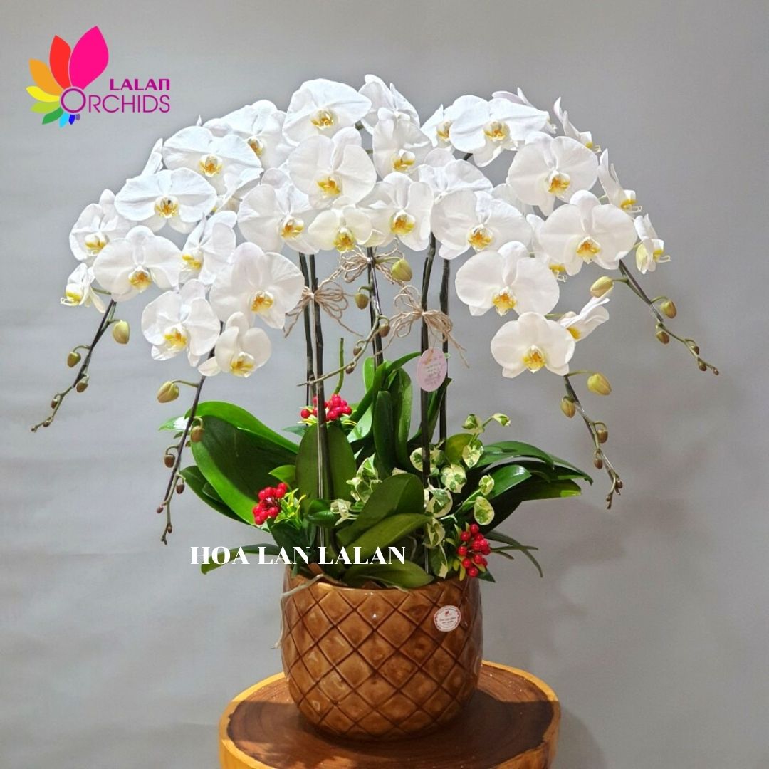 Chậu hoa lan hồ điệp màu trắng tinh khôi 5 cành mang lại ý nghĩa cho những điều sạch sẽ và tốt đẹp nhất, phù hợp trong những sự kiện như khai trương, sinh nhật, mừng tân gia, trưng văn phòng,…