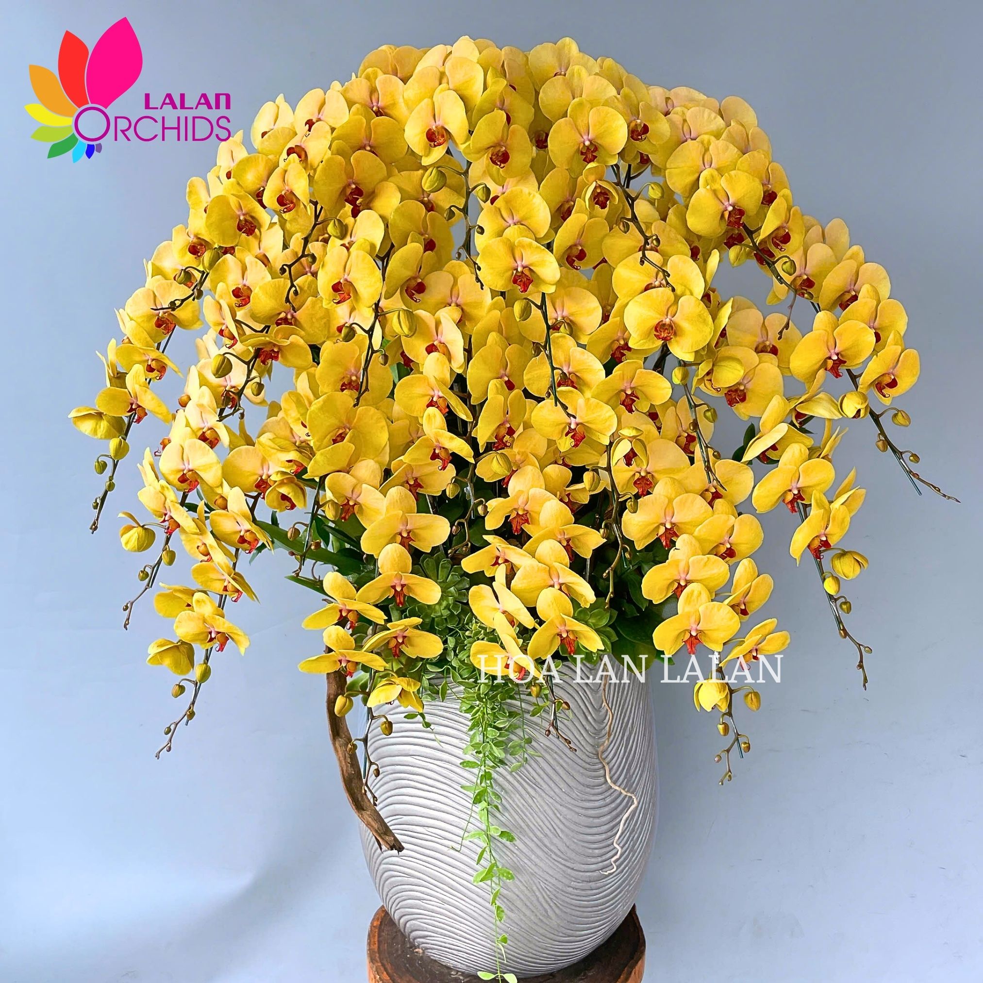Mỗi cành hoa trong chậu hoa lan hồ điệp vàng rực rỡ đều được tuyển chọn tỉ mỉ, đảm bảo những bông hoa tươi tắn, nở to và đều nhau. Sắc lan hồ điệp vàng sáng rực rỡ, bắt mắt thu hút, chậu hoa lan hồ điệp vàng tạo điểm nhấn nổi bật cho không gian. Khi được trưng bày trong nhà hay văn phòng, chậu hoa lan hồ điệp này trở thành điểm nhấn nổi bật, mang lại sự quý phái và đẳng cấp cho không gian trưng bày.