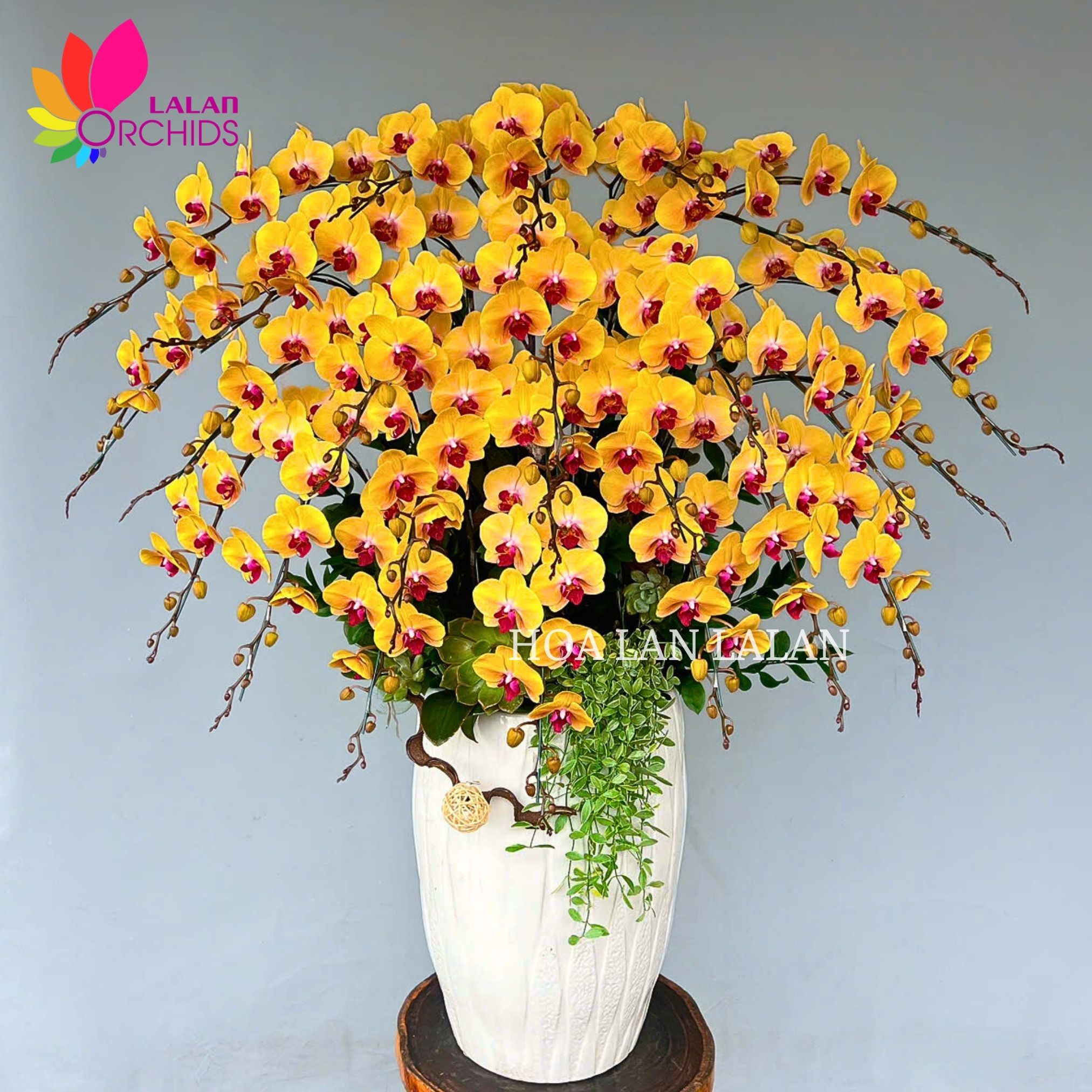 Với dáng vẻ sang trọng, chậu hoa lan hồ điệp vàng rực rỡ 25 cành phù hợp trang trí ở nhiều không gian như phòng khách, phòng làm việc, sảnh lớn, hoặc những buổi lễ trang trọng. 25 cành lan hồ điệp tượng trưng cho sự đủ đầy, may mắn và viên mãn, chậu hoa lan hồ điệp vàng này rất phù hợp để trưng bày trong các dịp lễ Tết, khai trương, tân gia, hoặc tặng quà đối tác, người thân.