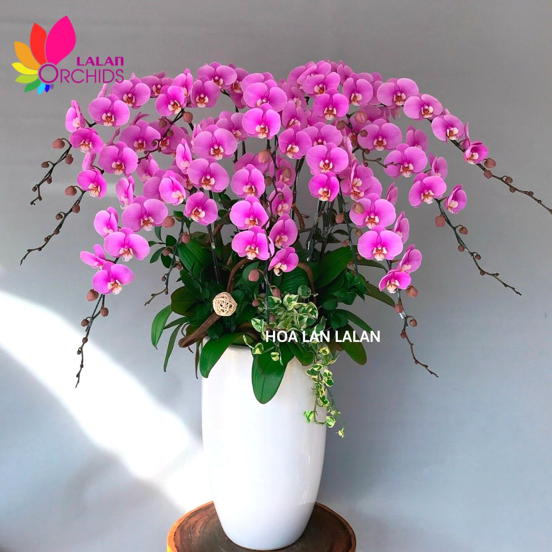 Lan hồ điệp hồng được ghép từ 15 cành lan màu hồng do các nghệ nhân của Hoa lan Lalan ghép theo nghệ thuật bonsai với các cành hoa xen kẽ một cách hài hòa, nghệ thuật tạo nên chậu hoa lan đẹp sang trọng, quý phái và tinh tế.