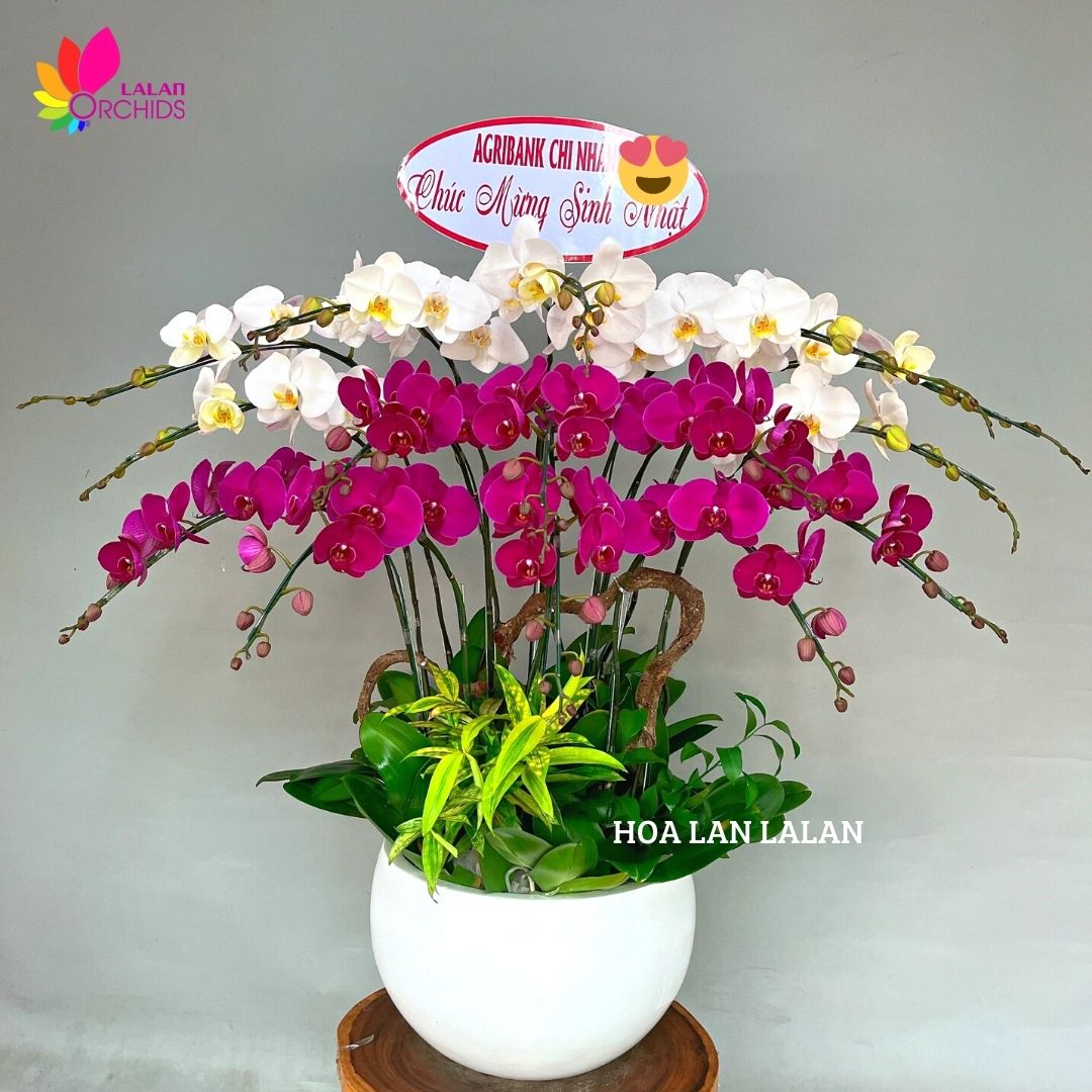 Chậu hoa lan hồ điệp 15 cành trắng tím là món quà để truyền tải một thông điệp, một lời chúc đến sếp hoặc người thân, bạn bè, đối tác trong những dịp sinh nhật, khai trương, mừng tân gia hoặc dùng để trang trí văn phòng, chưng trong ngày lễ, tết,...