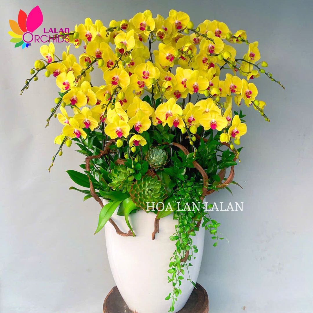 Mẫu chậu lan hồ điệp 20/10 màu vàng hoành tráng tặng đối tác VIP