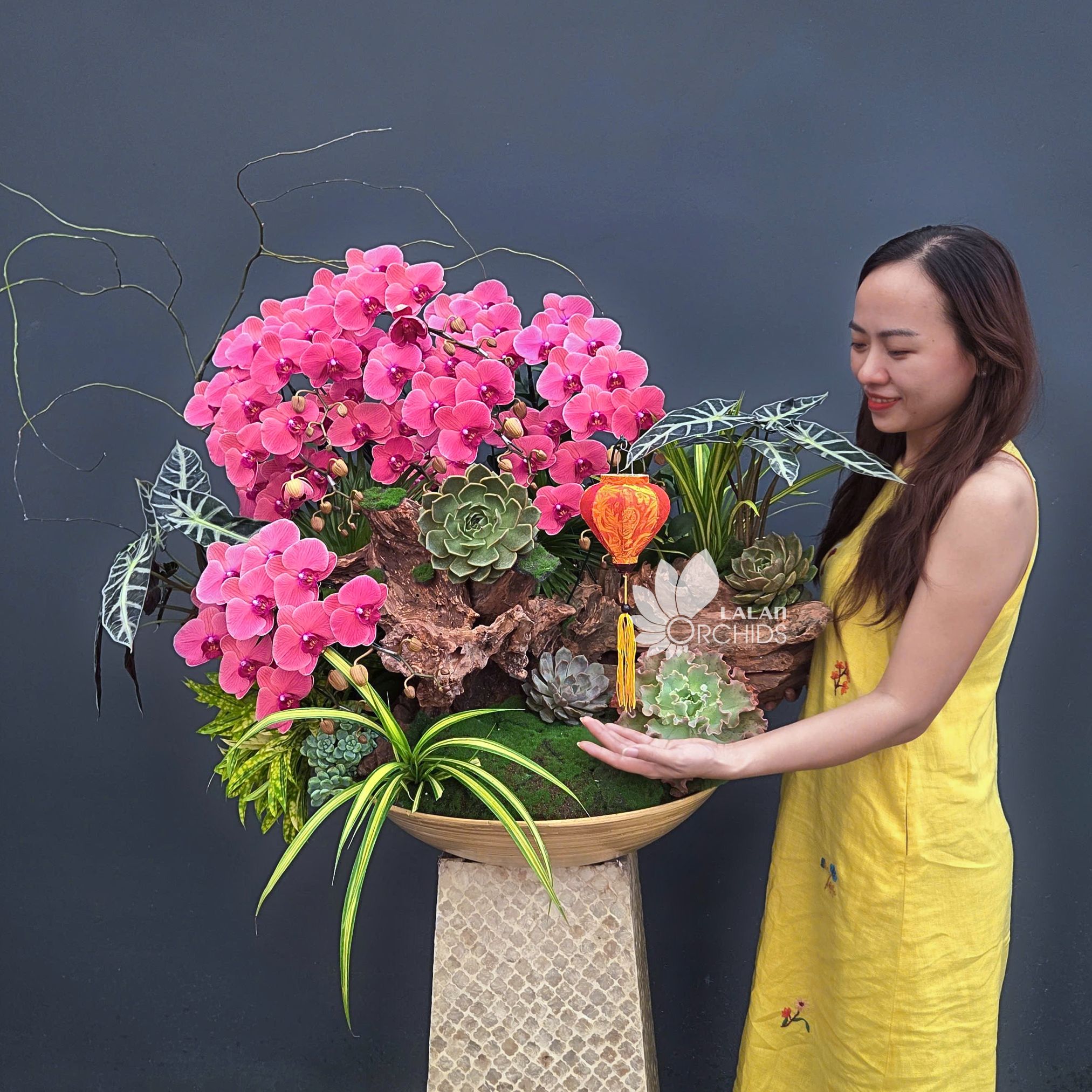 Không chỉ đẹp bền lâu, lan hồ điệp còn tượng trưng cho may mắn, hạnh phúc và sự thịnh vượng. Phù hợp trưng bày phòng khách, sảnh công ty hoặc làm quà tặng đầy ý nghĩa.