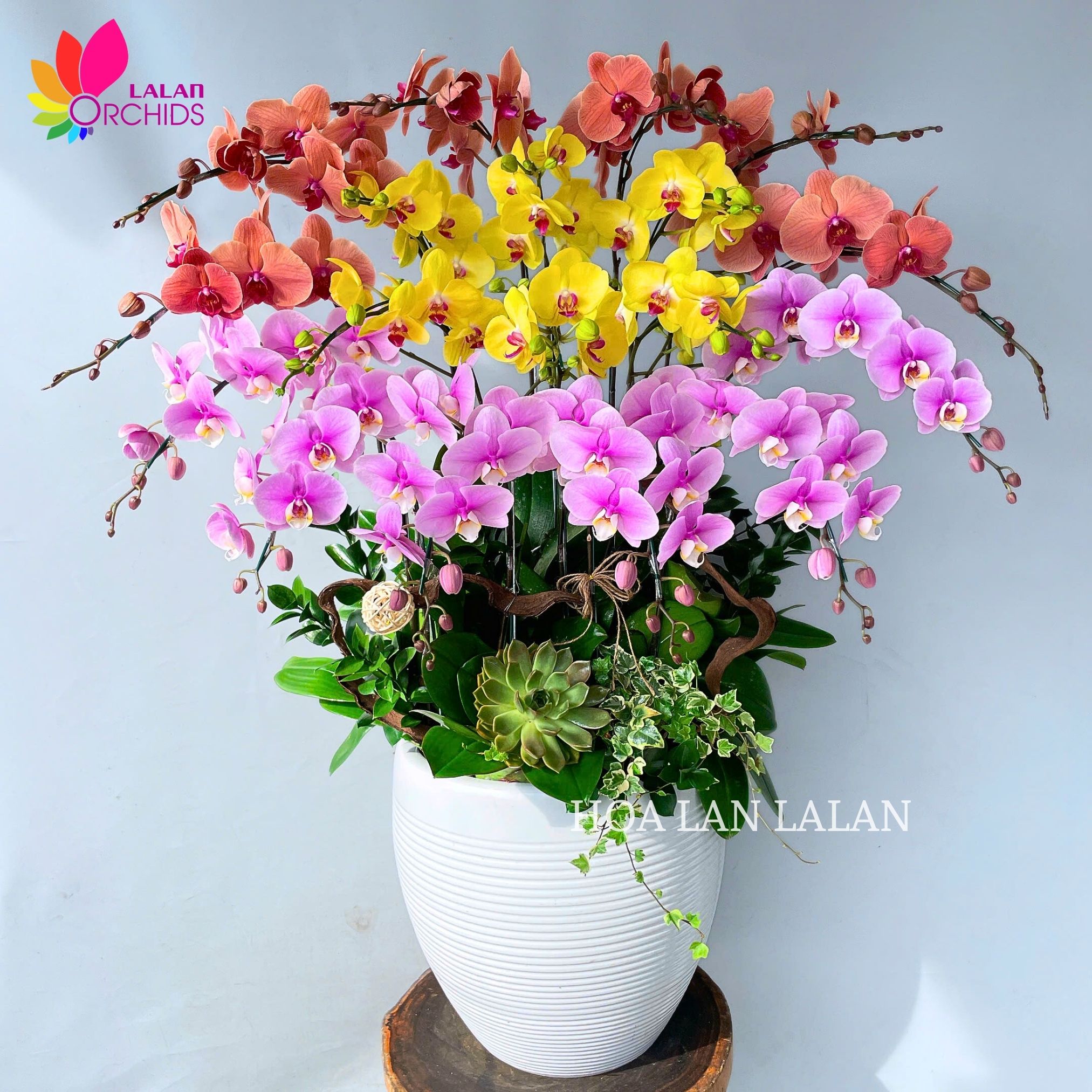Với màu sắc tươi sáng, chậu lan hồ điệp này mang ý nghĩa khởi đầu thuận lợi, thu hút tài lộc và sự thịnh vượng. Chậu hoa lan hồ điệp sẽ là món quà độc đáo và ý nghĩa để dàng tặng cho nhiều dịp quan trọng từ khai trương, tân gia hay sinh nhật, dịp lễ, tết. Tặng chậu lan hồ điệp như một lời chúc mừng về sự thịnh vượng, thành công và hạnh phúc.