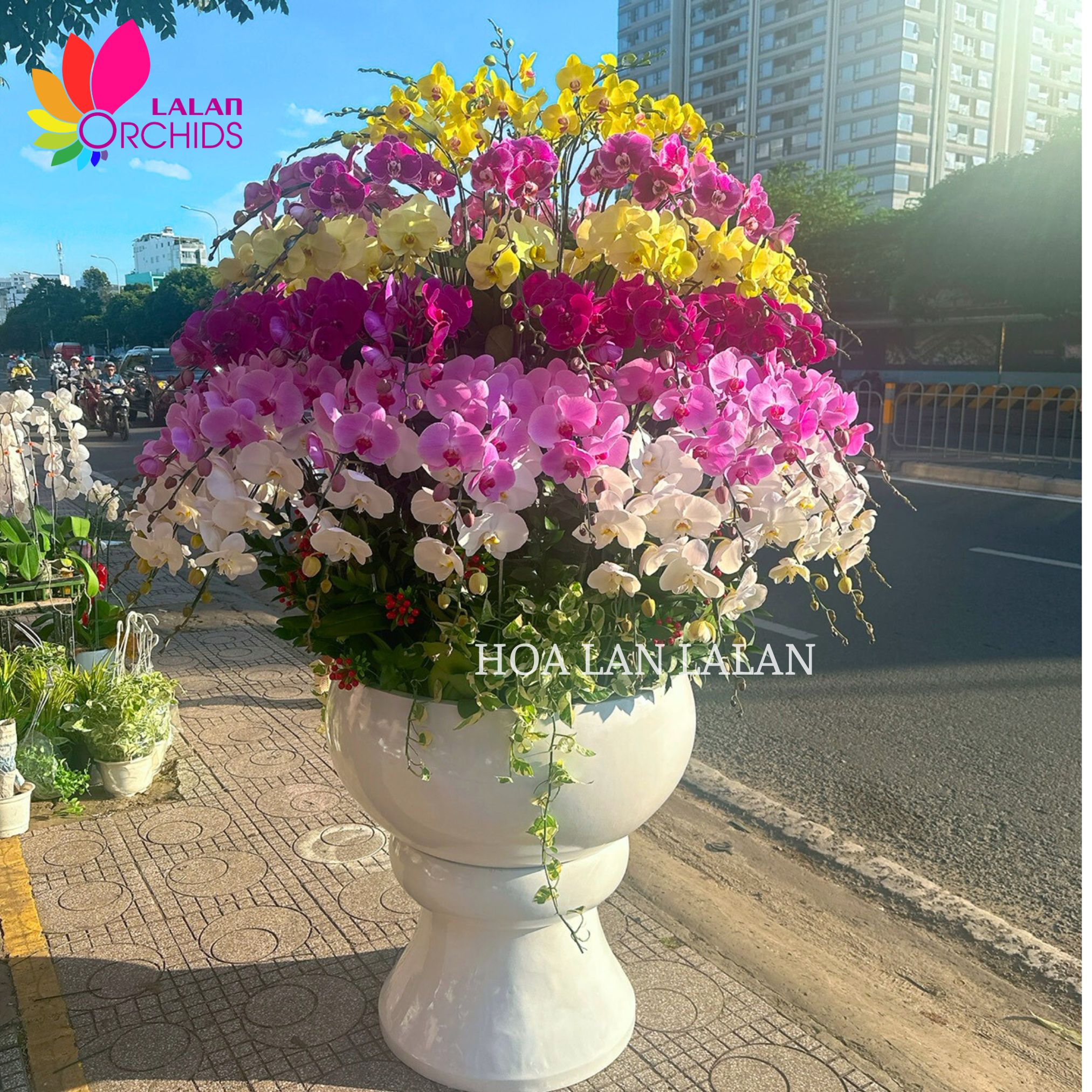 Với kích thước lớn cùng sự bề thế hoành tráng, chậu lan hồ điệp đa sắc cắm xoay tròn rất thích hợp để trang trí tại phòng khách rộng lớn, nơi tiếp đón khách quý. Ngoài ra, chậu lan hồ điệp còn là lựa chọn lý tưởng cho những không gian sang trọng khách sạn, sảnh lớn công ty hay các sự kiện trang trọng, giúp nâng cao vẻ đẹp tổng thể của không gian.