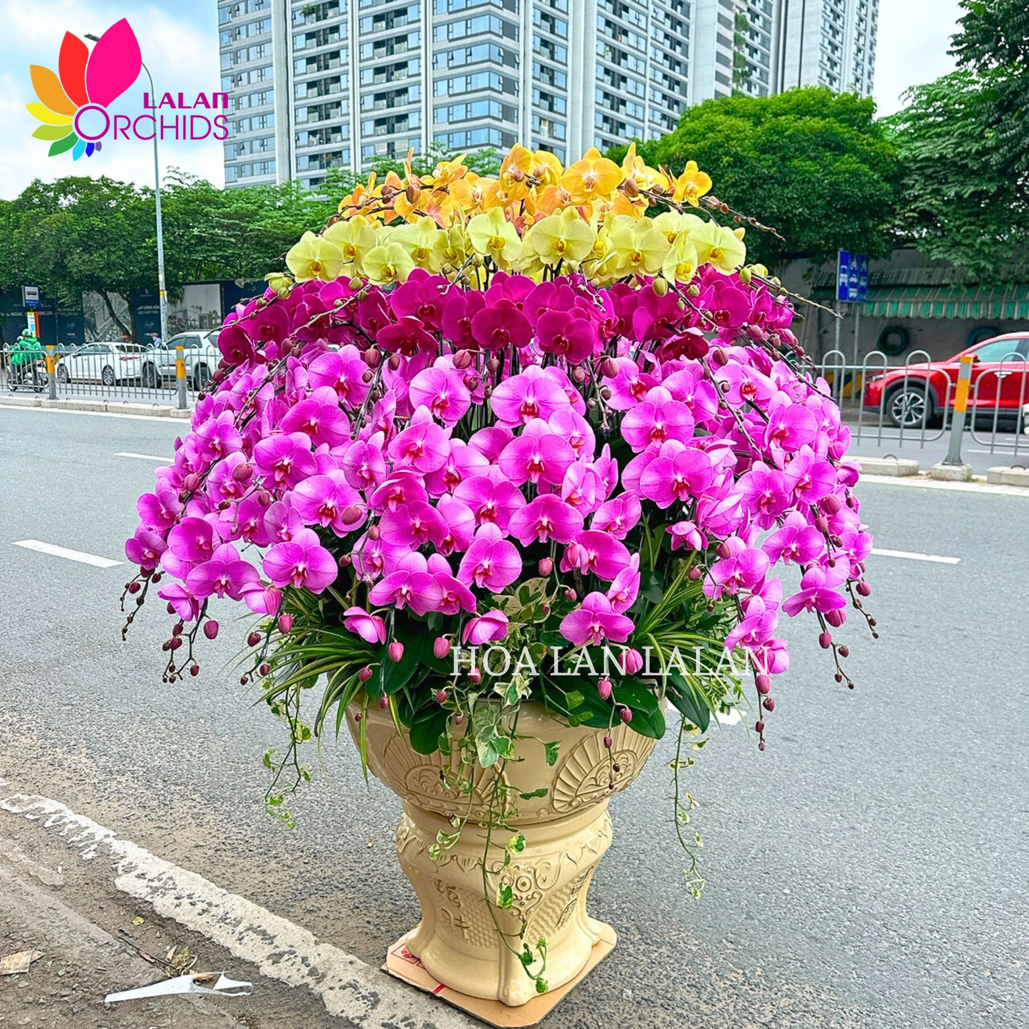 Về ý nghĩa phong thủy, lan hồ điệp mang lại may mắn, thịnh vượng và tài lộc. Sự đa dạng về sắc lan hồ điệp không chỉ đem lại giá trị về mặt thẩm mỹ mà còn giúp thu hút và điều hòa dòng chảy năng lượng trong không gian. Mẫu lan hồ điệp đa sắc cắm xoay tròn là sự lựa chọn lý tưởng cho những ai yêu thích vẻ đẹp tự nhiên, tìm kiếm sự hài hòa trong phong thủy, muốn gửi gắm thông điệp yêu thương qua món quà ý nghĩa. Với thiết kế sang trọng, chậu lan hồ điệp sẽ là điểm nhấn tuyệt vời cho không gian rộng lớn như phòng khách, sảnh tiệc hay sảnh công ty, phòng hội nghị cần sự trang trọng và sang trọng.
