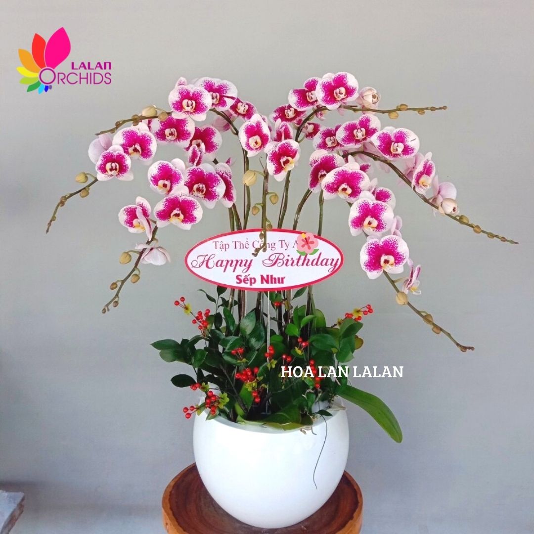 Với thiết kế 7 cành hoa được cắm trong chậu sứ trắng còn mang lại một ý nghĩa cho sự an lành và may mắn cho chính gia chủ. Chậu Lan hồ điệp đột biến 7 cành tặng sinh nhật rất thích hợp cho những bữa tiệc sinh nhật hay được biếu tặng trong các ngày lễ tết.