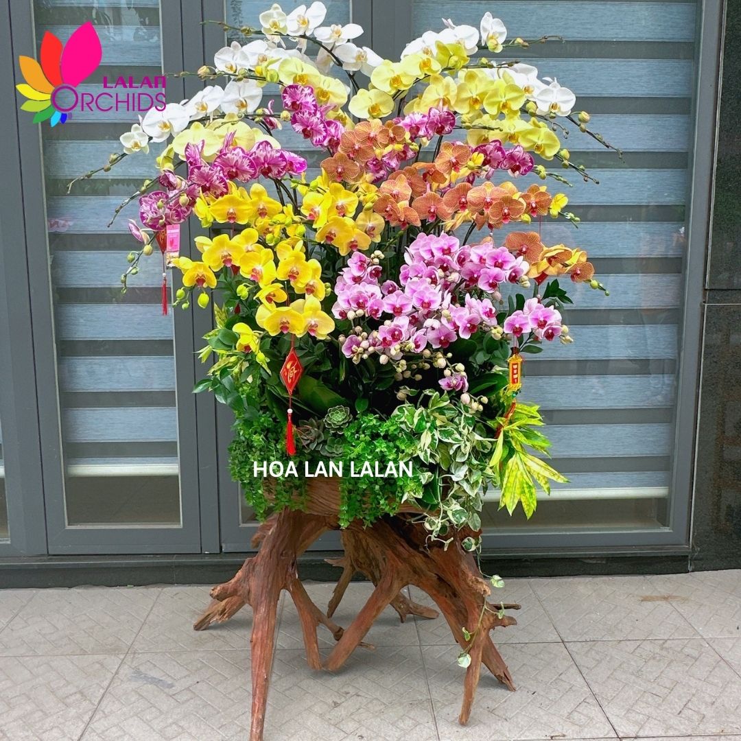 Việc kết hợp giữa hoa lan hồ điệp và thân gỗ lũa tạo nên một tác phẩm nghệ thuật độc đáo, đem lại cho người xem cảm giác như đang ngắm một bức tranh thiên nhiên với sắc màu tươi sáng và sự độc đáo của từng chi tiết. Chậu hoa lan hồ điệp ghép trên thân gỗ lũa không chỉ là một món quà tuyệt vời cho bạn bè và người thân yêu, mà còn là một điểm nhấn tuyệt vời cho không gian sống của bạn.