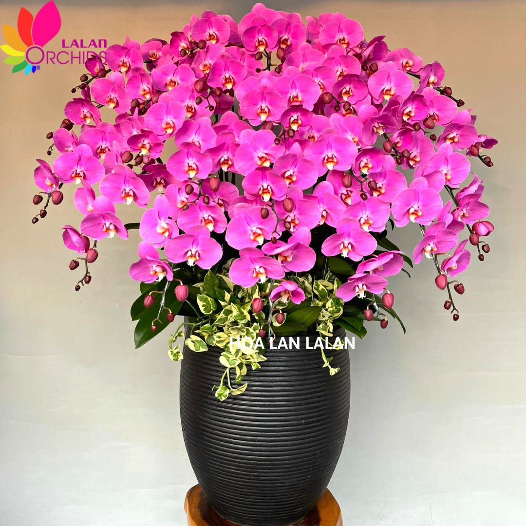 Lan hồ điệp 25 cành hồng do các nghệ nhân của Hoa lan Lalan ghép theo nghệ thuật xen kẽ một cách hài hòa, nghệ thuật tạo nên chậu hoa lan đẹp sang trọng, quý phái và tinh tế.