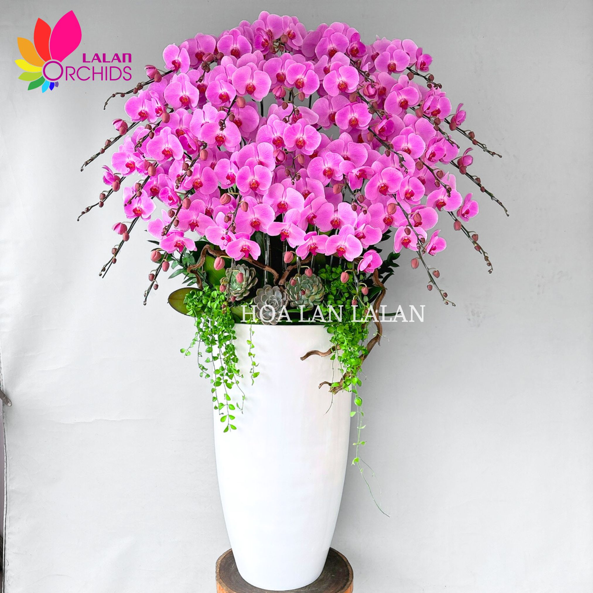 Lan hồ điệp hồng được xem là biểu tượng của sự dịu dàng, sang trọng và tinh tế. Sắc hồng quyến rũ của lan hồ điệp không chỉ làm say đắm lòng người mà còn mang đến không gian sự ấm áp yêu thương. Mẫu lan hồ điệp này được thiết kế với chậu cao cấp, kết hợp cùng sen đá và cây xanh càng làm nổi bật vẻ đẹp tự nhiên và sự sang trọng của lan hồ điệp hồng.