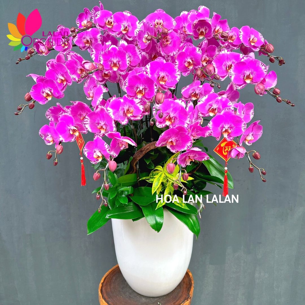 Chậu hoa lan hồ điệp hồng đột biến 14 cành được các nghệ nhân của Hoa lan LaLan thiết kế một cách hài hòa và nghệ thuật, tạo nên chậu hoa lan hồ điệp vô cùng độc đáo và sang trọng.