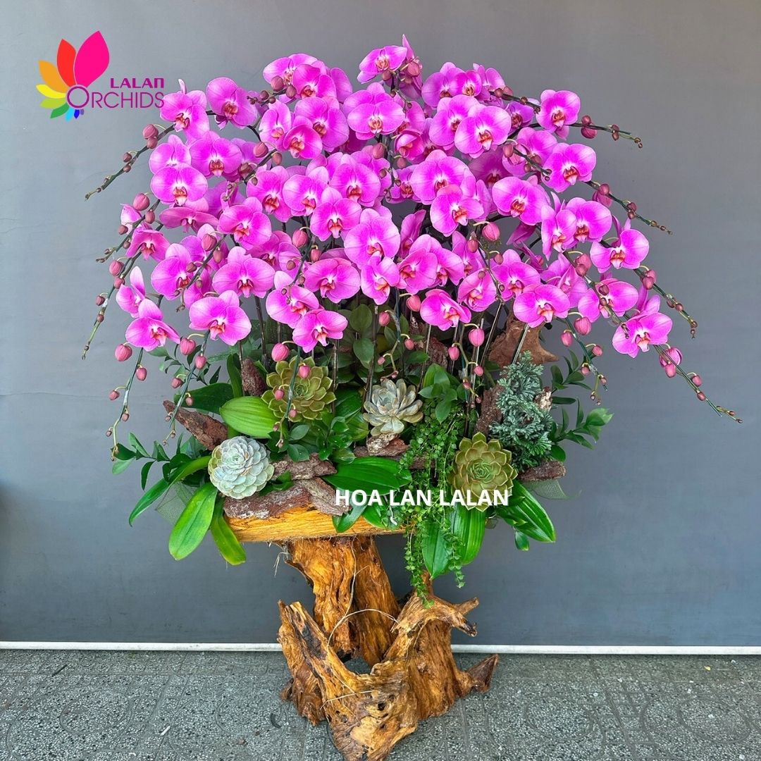 Hoa lan hồ điệp hồng ghép gỗ lũa được ghép từ 23 cành lan hồ điệp hồng trên gỗ lũa. Tác phẩm được các nghệ nhân của Hoa lan Lalan cắm xen kẽ một cách hài hòa giữa hoa lan và gỗ lũa mang lại một vẻ đẹp khó tả làm thu hút mọi ánh nhìn.