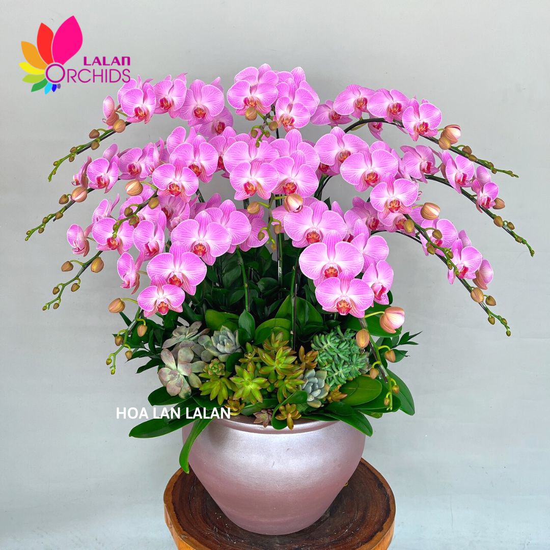 Lan hồ điệp hồng lùn 12 cành với thiết kế sang trọng, độc đáo, kết hợp cùng sen đá mang đến ý nghĩa cho sự an lành, may mắn và hạnh phúc cho người nhận. Màu hồng của hoa không rực rỡ chói lòa như màu đỏ nên nó thường mang lại cảm giác dễ chịu mà không phải ai cũng có thể cưỡng lại sự thu hút của nó.