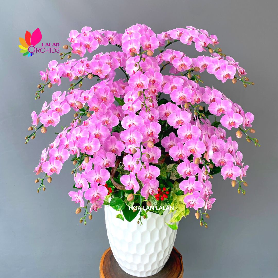 Những bông hoa lan nhỏ xinh nở rộ như những viên ngọc hồng, mang một vẻ đẹp quý phái và lôi cuốn. Không chỉ là một vật trang trí, mỗi cành lan hồng mini còn mang theo ý nghĩa tích cực từ quan điểm phong thủy. Lan hồ điệp được xem là biểu tượng của may mắn và thịnh vượng. Mỗi cành lan là chứa đựng tình yêu và may mắn, làm tăng cường năng lượng tích cực cho không gian xung quanh.