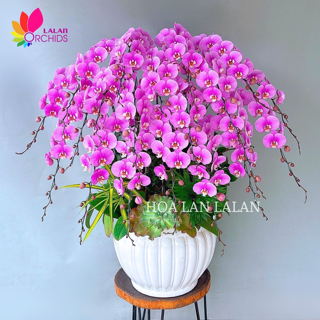 Rực rỡ nhưng vẫn dịu dàng, chậu lan hồ điệp hồng 20 cành là sự kết hợp hài hòa giữ vẻ đẹp sang trọng và cảm xúc tinh tế. Từng cành lan hồ điệp được Lalan lựa chọn kĩ càng, cứm nghệ thuật theo dáng uốn nhẹ, từng cành lan hồ điệp hồng hướng đều ra phía trước khoe trọn nét duyên dáng và mềm mại.