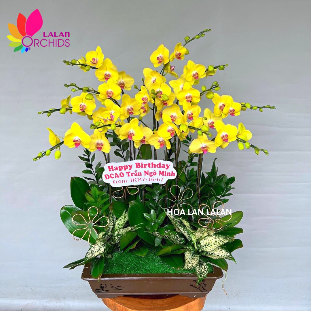 Chậu lan hồ điệp tết màu vàng chứa đựng được những lời chúc tốt đẹp nhất mà bạn muốn dành tặng cho người thân, bạn bè, phù hợp tặng trong các dịp khai trương, sinh nhật, quà tặng người thân, chưng văn phòng,…