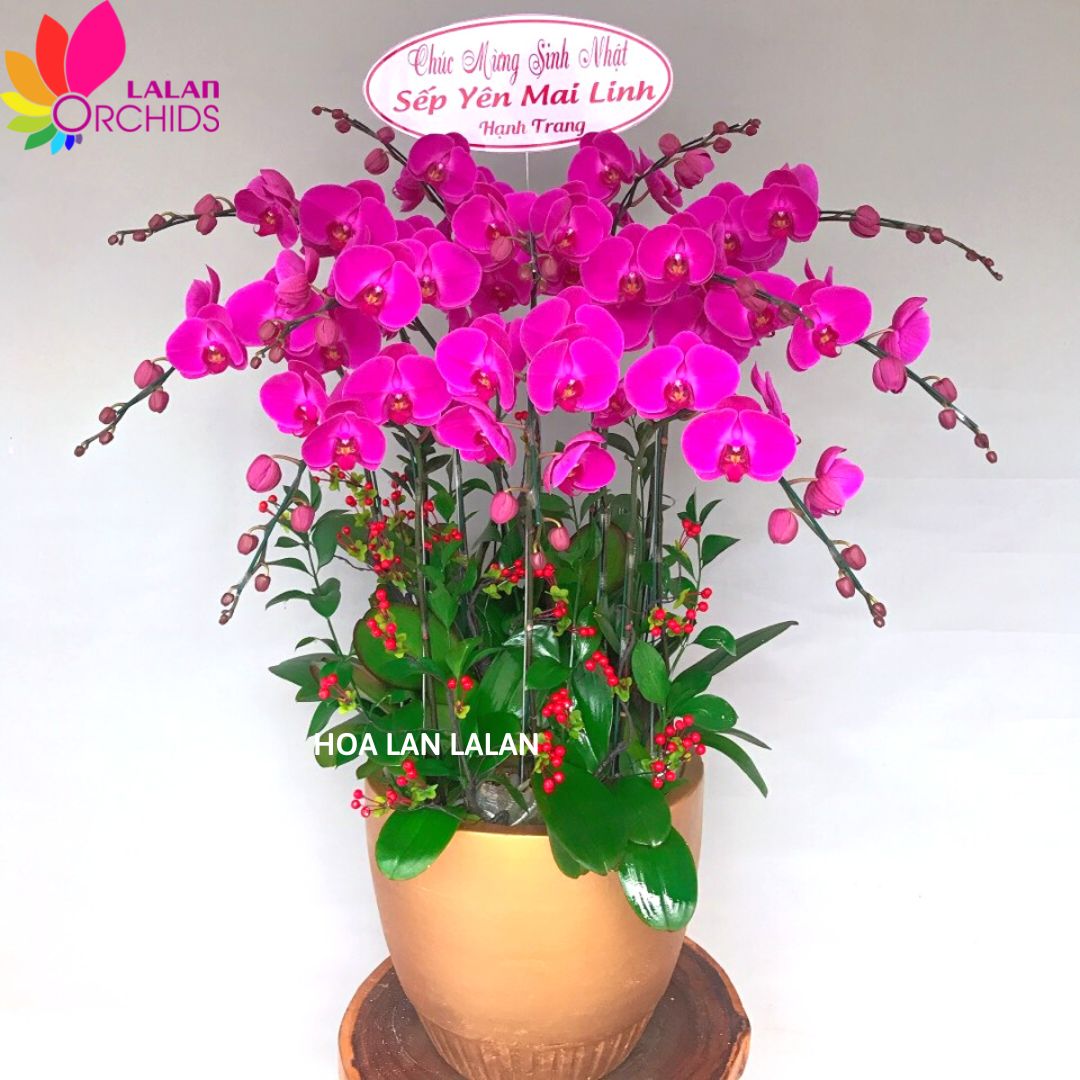 Chậu lan hồ điệp tím vươn dài cùng với vẻ đẹp tinh tế của nó sẽ rất thích hợp cho việc biếu tặng người thân, bạn bè hay đồng nghiệp trong những dịp sinh nhật, khai trương, lễ, tết.