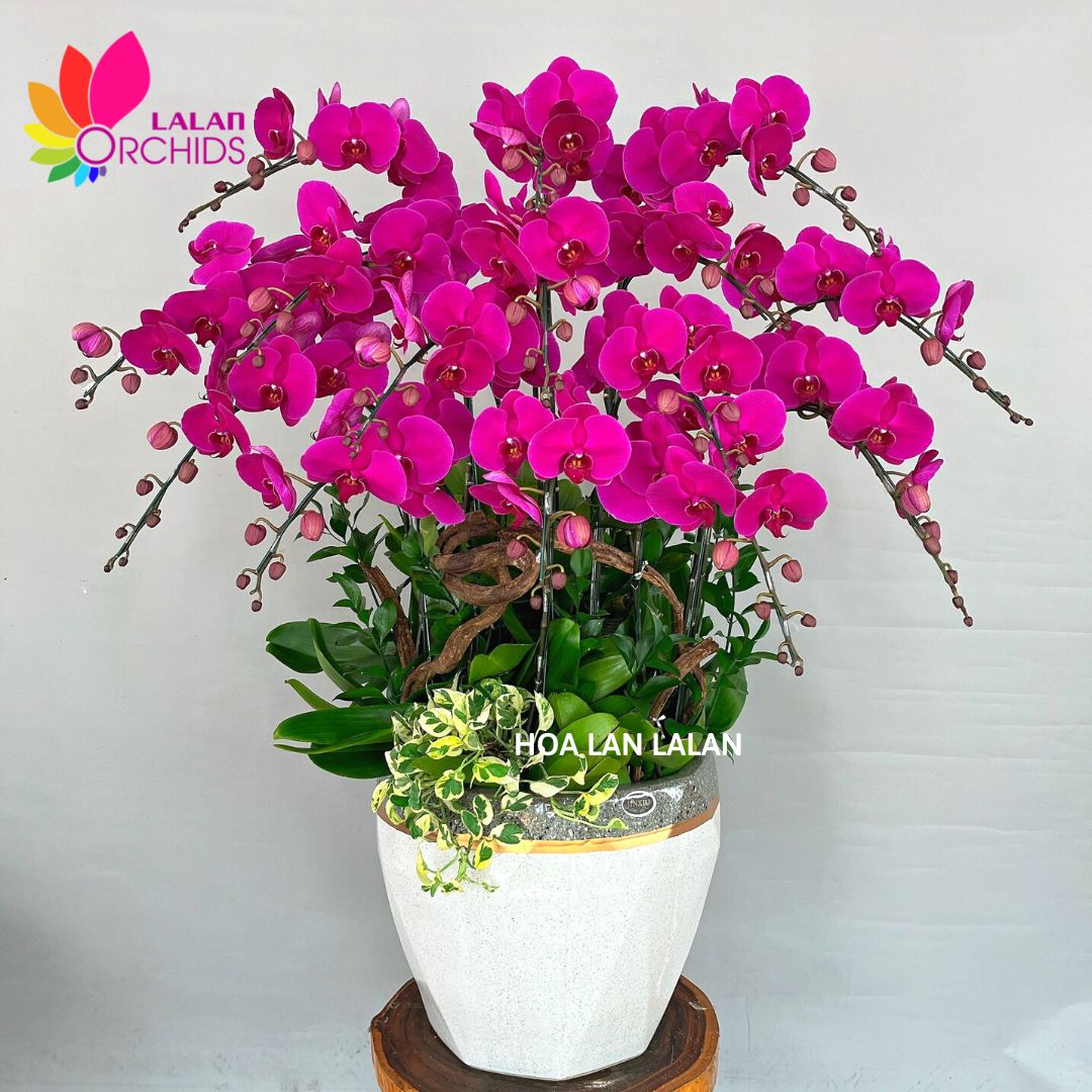 Chậu lan hồ điệp tím 15 cành được các nghệ nhân của Hoa lan LaLan thiết kế một cách hài hòa, độc đáo, tạo nên tác phẩm đẹp, sang trọng và thu hút mọi ánh nhìn.