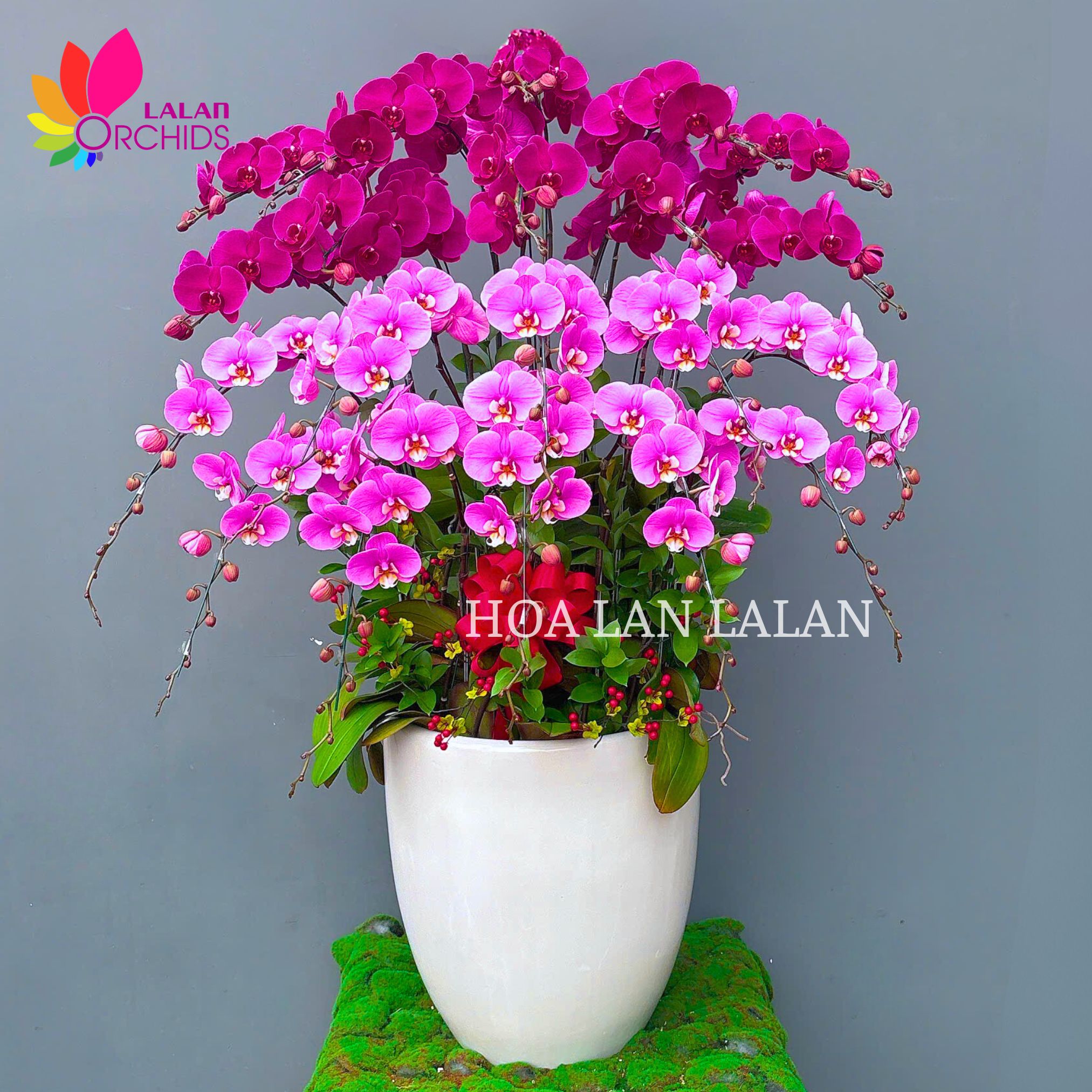 Một sự kết hợp đầy cảm xúc giữa sắc tím sang trọng và hồng ngọt ngào, chậu lan hồ điệp tím hồng mang đến vẻ đẹp hài hòa và cuốn hút một cách lạ kì. Hai gam màu tưởng chừng đối lập lại hòa quyện một các tinh tế, cân đối và đầy tính nghệ thuật, tạo nên tổng thể vừa ấm áp vừa sang trọng, là món trang trí hoàn hảo cho những không gian cần điểm nhấn nhẹ nhàng nhưng vẫn toát lên khí chất đẳng cấp.