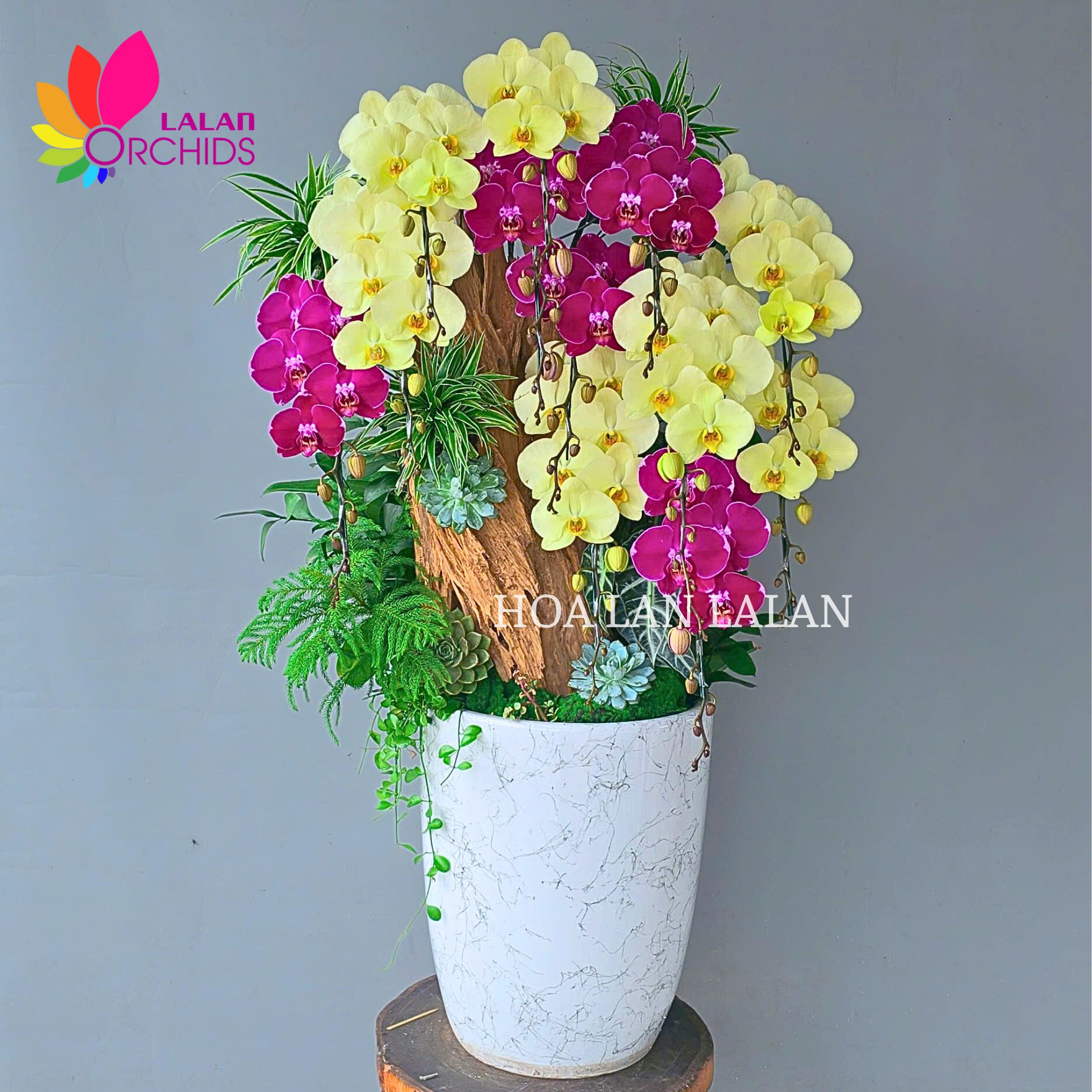 Nếu bạn đang tìm một chậu hoa đẹp, sang, hợp phong thủy lại mang ý nghĩa may mắn cho năm mới và ngày khai trương, thì chậu lan hồ điệp tím mix xanh chính là lựa chọn hoàn hảo. Chậu lan hồ điệp tím xanh bơ là một trong những thiết kế đẳng cấp bậc nhất tại hoa lan hồ điệp Lalan, nơi mỗi cành lan được chọn lựa bằng sự tinh tế và mỗi dáng cắm đều mang theo một câu chuyện riêng.