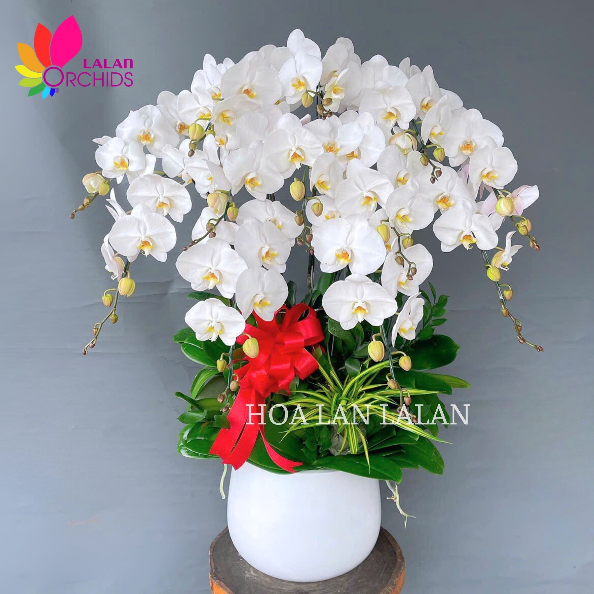 Mẫu chậu lan hồ điệp trắng 12 cành sang trọng tặng khai trương