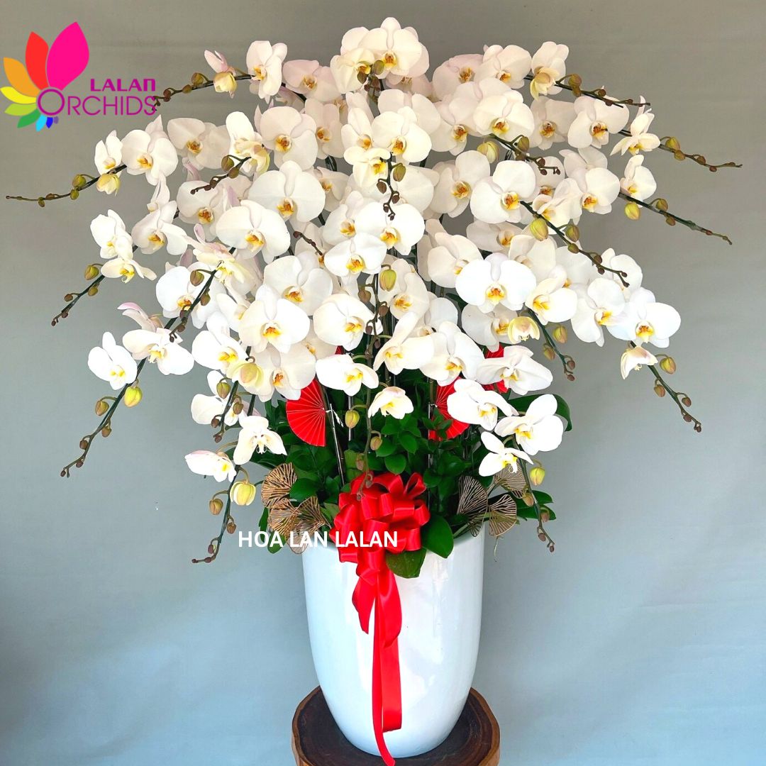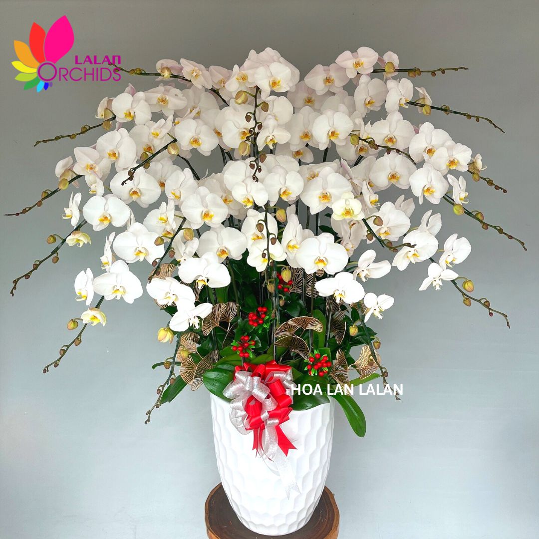 Chậu lan hồ điệp được kết hợp hài hòa từ 20 cành lan do các nghệ nhân của Hoa lan LaLan kết hợp hài hòa, tạo nên tác phẩm đẹp và sang trọng, chứa đựng được những lời chúc tốt đẹp nhất mà bạn muốn dành tặng cho người thân, bạn bè, phù hợp tặng trong các dịp khai trương, sinh nhật, quà tặng người thân, chưng văn phòng,…