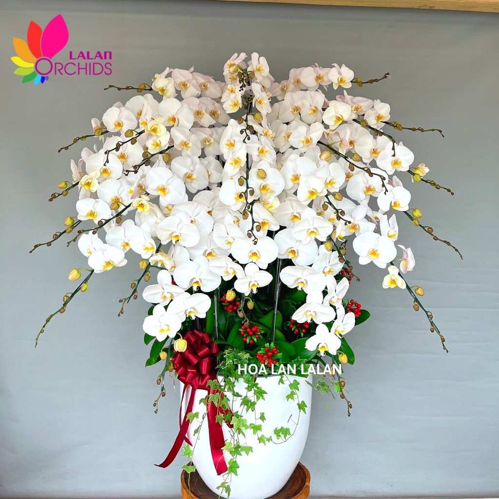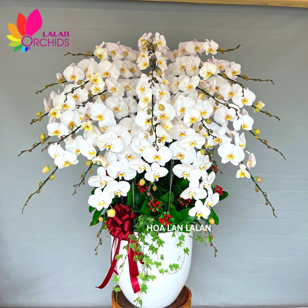 Chậu lan hồ điệp trắng được kết hợp hài hòa từ 25 cành lan do các nghệ nhân của Hoa lan LaLan ghép, tạo nên tác phẩm đẹp và sang trọng, chứa đựng được những lời chúc tốt đẹp nhất mà bạn muốn dành tặng cho người thân, bạn bè, phù hợp tặng trong các dịp khai trương, sinh nhật, quà tặng người thân, chưng văn phòng,…