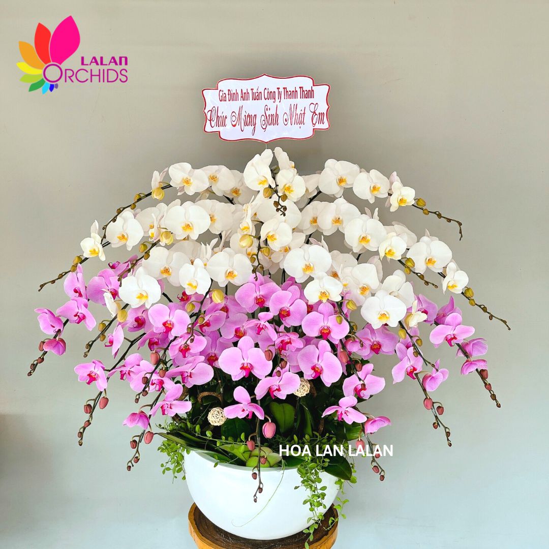 Lan hồ điệp trắng hồng được mệnh danh là nữ hoàng của các loài hoa bởi vẻ đẹp rực rỡ và sang trọng. Lan hồ điệp trắng có ý nghĩa biểu tượng cho sự tinh khiết, thánh thiện và sang trọng. Lan hồ điệp hồng thể hiện lên sự dịu dàng, duyên dáng trong từng cánh hoa. Sự kết hợp hai màu hoa tạo nên vẻ đẹp sang trọng và tinh tế, làm cuốn hút mọi ánh nhìn.