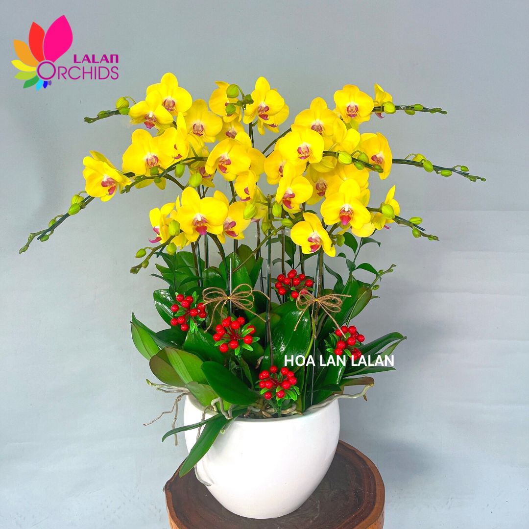 Lan hồ điệp vàng là màu của ánh nắng dịu nhẹ, là màu của cuộc sống vui tươi, lạc quan, ấm áp, giàu sang và thịnh vượng; lan hồ điệp vàng còn là loài hoa mang ý nghĩa cho sự khởi đầu tốt đẹp, thành công mỹ mãn. chậu hoa lan hồ điệp này không những có vẻ đẹp thanh cao mà nó như còn muốn mang tới thông điệp về một cuộc sống no đủ, thịnh vượng. Chậu hoa lan hồ điệp màu vàng chắc hẳn sẽ là món quà vô cùng ý nghĩa để gửi tặng đến người thân, bạn bè, đối tác hay khách hàng trong những dịp khai trương, sinh nhật, tân gia...