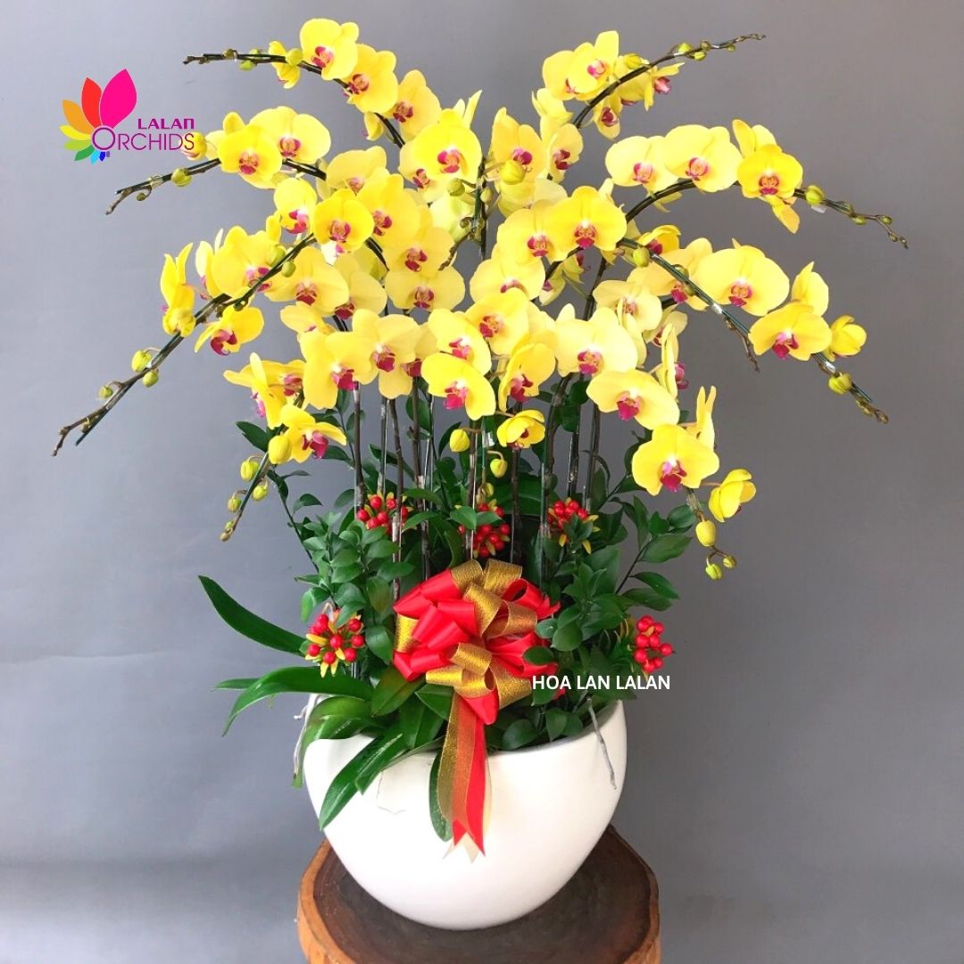 Lan hồ điệp màu vàng 12 cành là một tuyệt tác nghệ thuật với vẻ đẹp rực rỡ và ý nghĩa phong thủy sâu sắc. Nhìn vào chậu hoa này, lòng người không khỏi trầm trồ trước sắc vàng tươi sáng, tỏa nắng và niềm vui trong không gian sống.