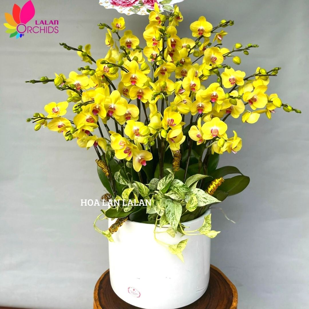 Lan hồ điệp vàng được mệnh danh là nữ hoàng của vương quốc hoa lan hồ điệp. Nó mang lại sự quyền quý, kiêu sa nhưng vô cùng ấm áp. Với những cành hoa lan hồ điệp vàng rực rỡ mang cảm giác của sự sung túc, giàu có và thịnh vượng.