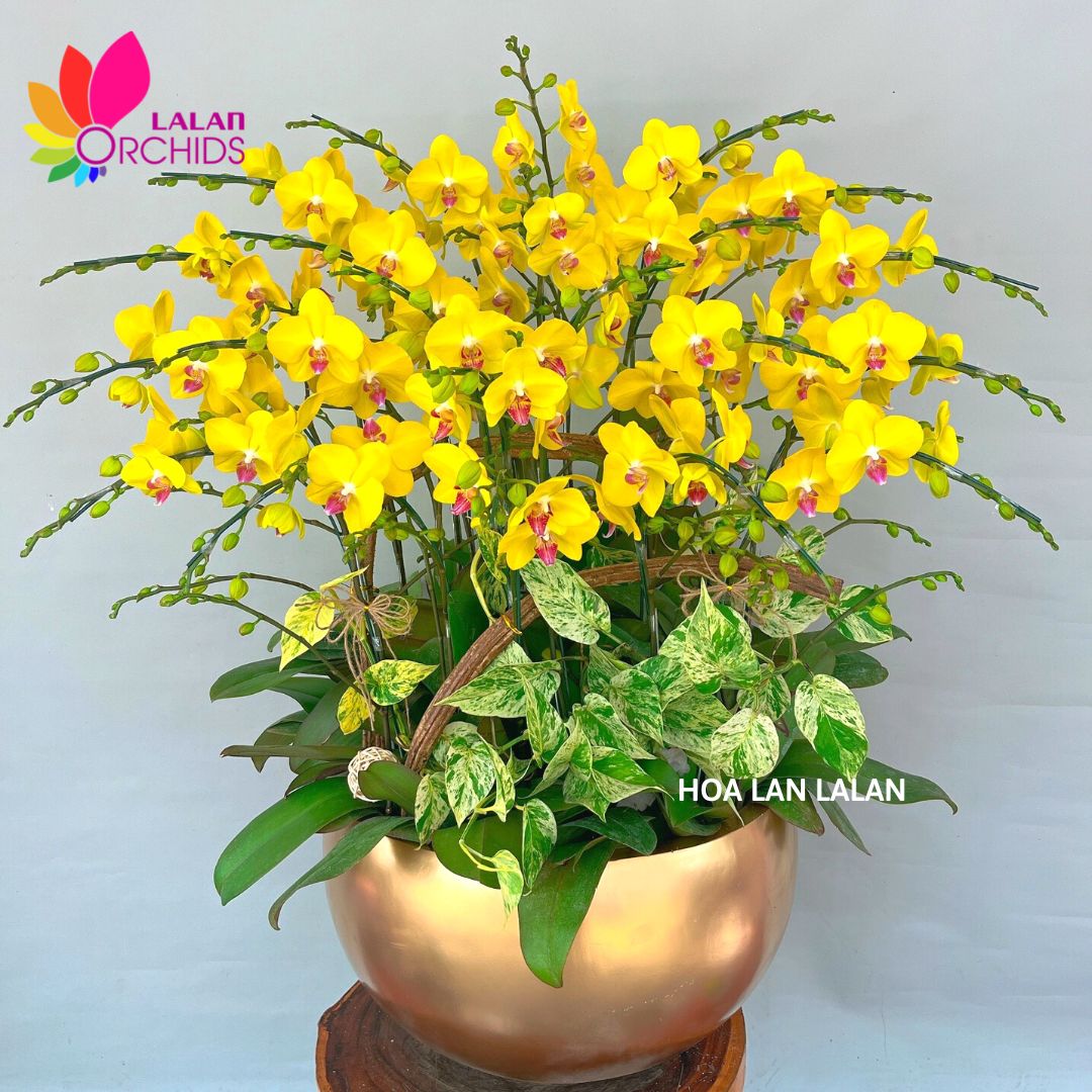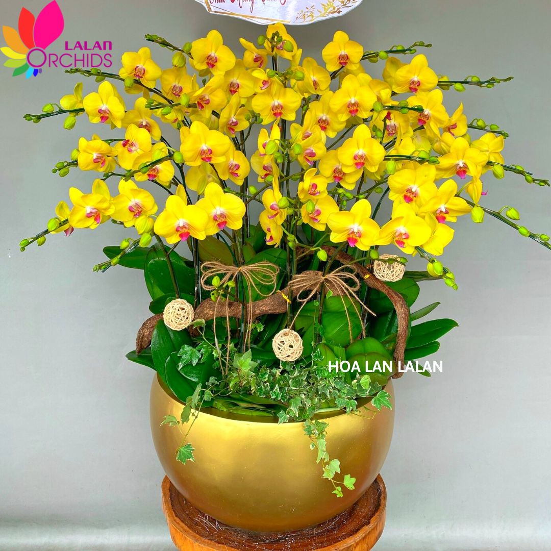 Chậu lan hồ điệp vàng 20 cành được kết hợp hài hòa giữa cá cành lan tạo nên tác phẩm đẹp và sang trọng, chứa đựng được những lời chúc tốt đẹp nhất mà bạn muốn dành tặng cho người thân, bạn bè, phù hợp tặng trong các dịp khai trương, sinh nhật, quà tặng người thân, chưng văn phòng,…