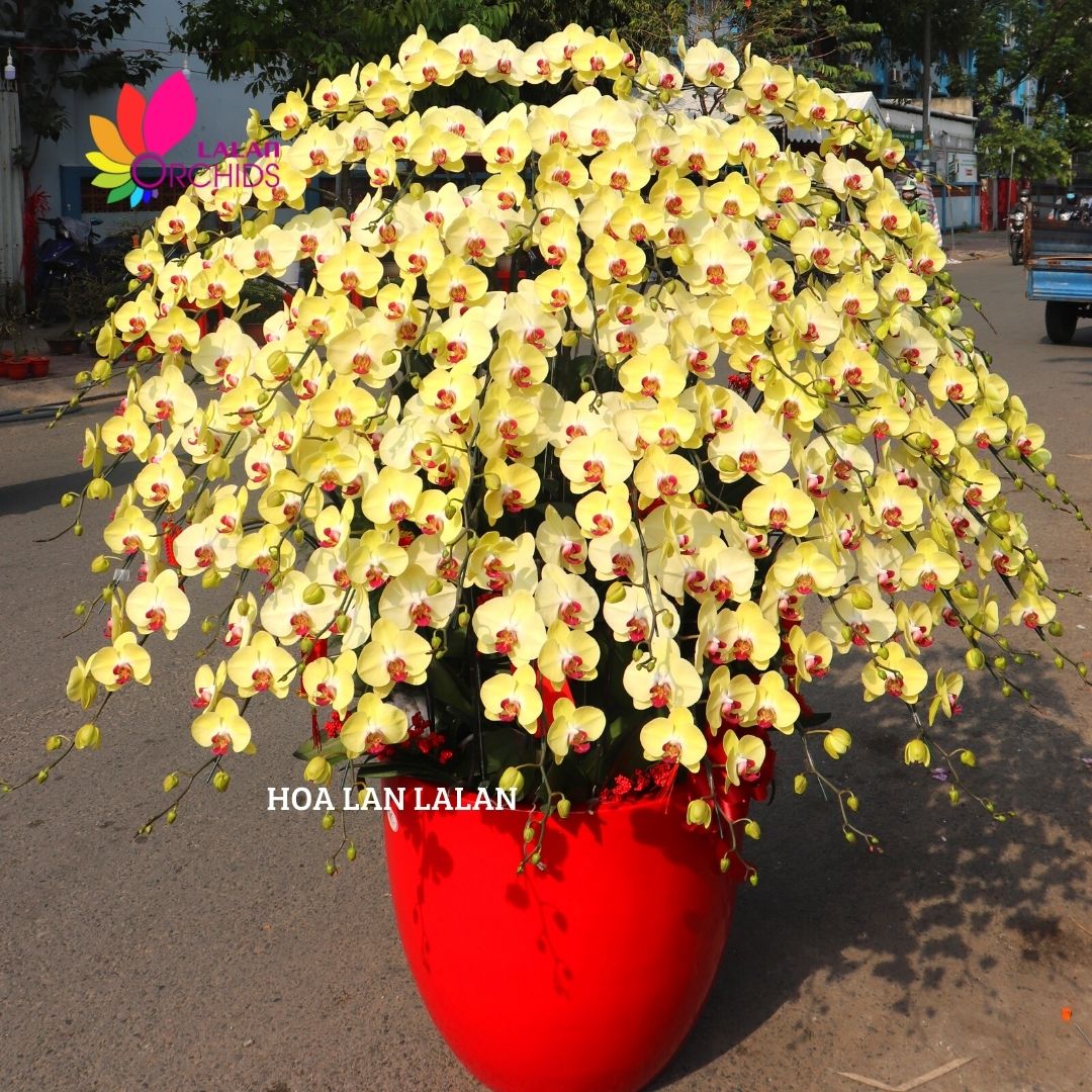 Chậu lan ghép từ những cành hồ điệp chất lượng loại A với đặc điểm bông to, cành dài, siêu bền, được các nghệ nhân của Hoa lan Lalan ghép xen kẽ một cách hài hòa, nghệ thuật tạo nên chậu hoa lan đẹp sang trọng, quý phái và tinh tế.