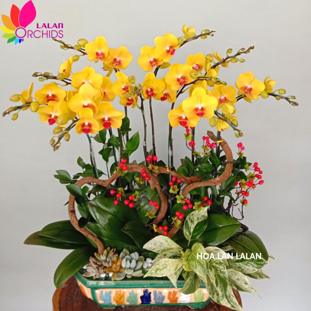 Chậu lan hồ điệp được kết hợp hài hòa giữa cá cành lan theo phong cách bonsai, tạo nên tác phẩm đẹp và sang trọng, chứa đựng được những lời chúc tốt đẹp nhất mà bạn muốn dành tặng cho người thân, bạn bè, phù hợp tặng trong các dịp khai trương, sinh nhật, quà tặng người thân, chưng văn phòng,…