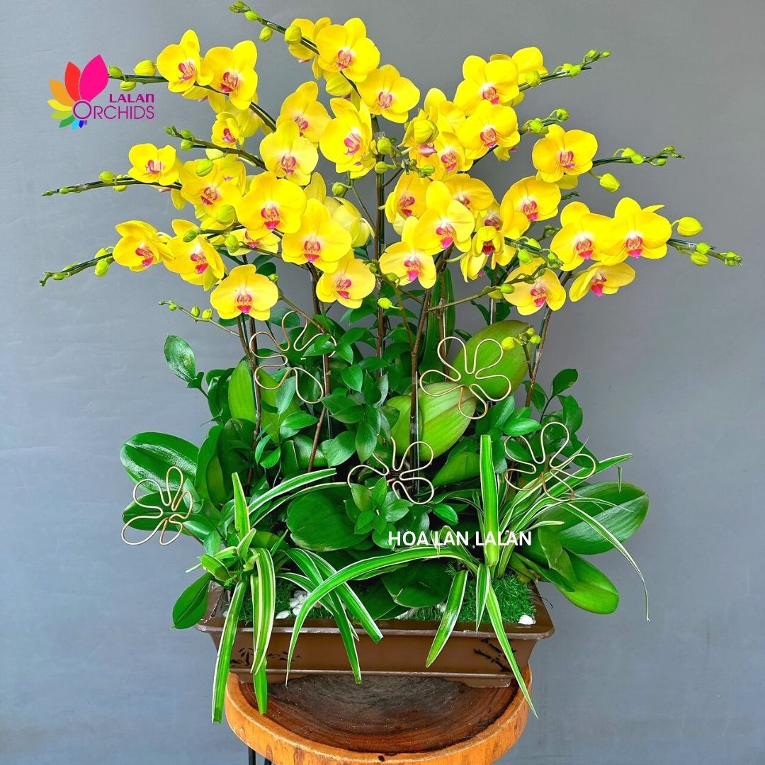 Màu vàng của hoa lan hồ điệp mang theo vẻ đẹp rực rỡ. Màu này tượng trưng cho sự thịnh vượng, sự tươi mới và sự tinh tế. Chậu hoa lan vàng ghép kiểu bonsai không chỉ là tác phẩm nghệ thuật mà còn là một biểu tượng của sự phát triển và thành công.