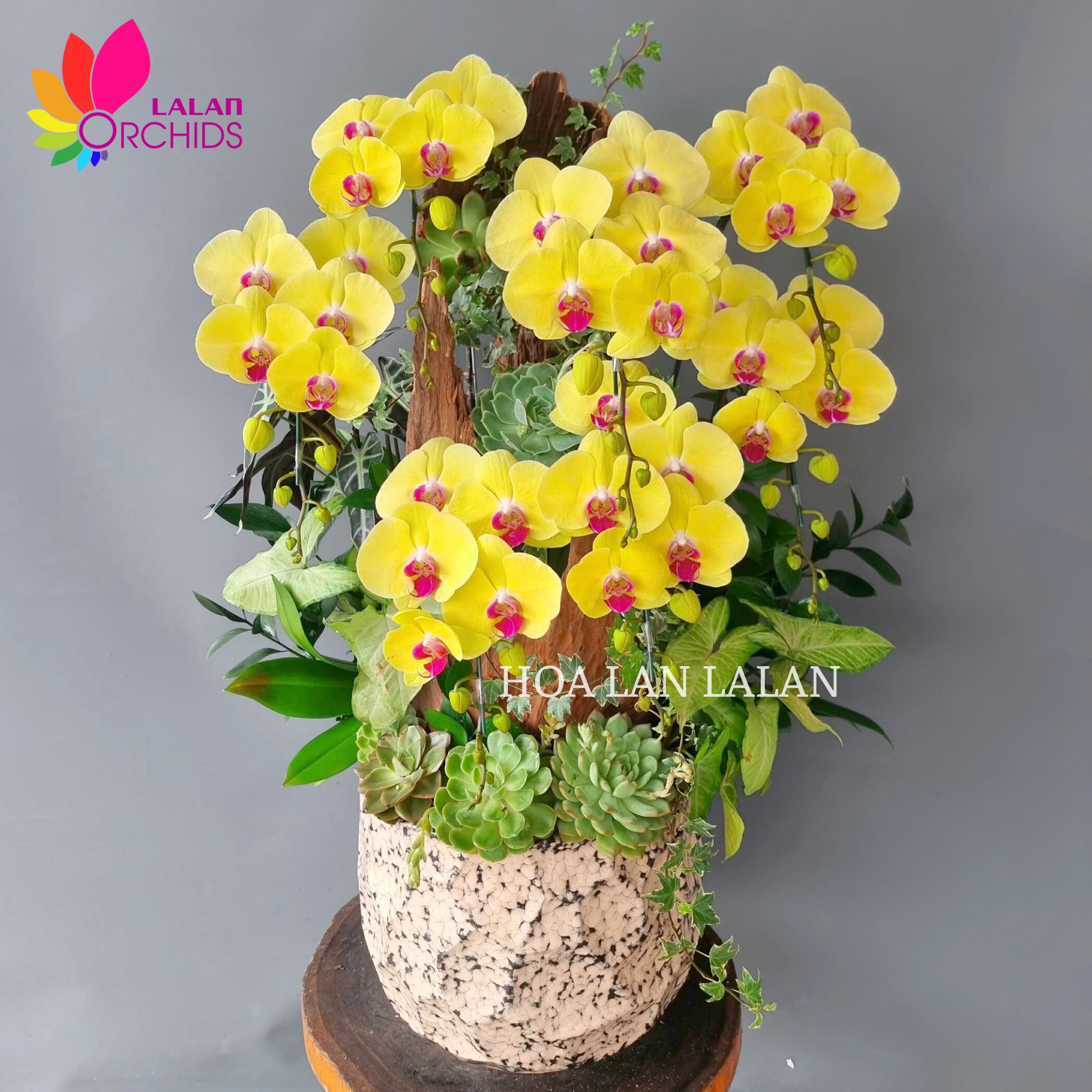 Mẫu lan hồ điệp vàng kim giáp ghép nghệ thuật mang vẻ đẹp rực rỡ sang trọng, vừa hàm chứa ý nghĩa sâu sắc về phong thủy. Không chỉ là một chậu lan hồ điệp cảnh trưng bày, mẫu lan hồ điệp vàng kim giáp này còn là món quà tinh tế truyền tải thông điệp may mắn và thịnh vượng đến người nhận.