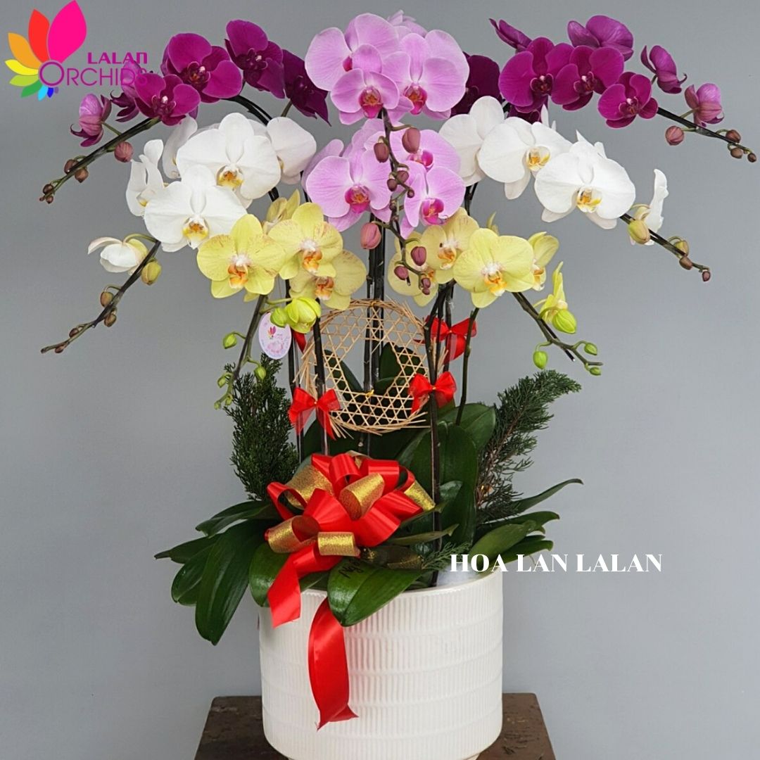 Tại Hoa Lan Lalan có rất nhiều mẫu mã, màu sắc, phong cách cắm lan hồ điệp khác nhau. Chúng tôi xin giới thiệu đến quý khách một số mẫu lan hồ điệp thông dụng để tặng khai trương dưới đây: